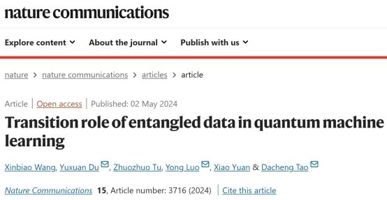 近日,国际综合性期刊Nature Communications(《自然•通讯》)在线发表了学院在量子人工智能理论方面的最新研究成果。论文题为“Transition Role of Entangled Data in Quantum Machine Learning”(《纠缠数据在量子机器学习中的相变行为》)。学院2021级博士研究生王新彪为论文第一作者,罗勇教授为通讯作者,第一会所