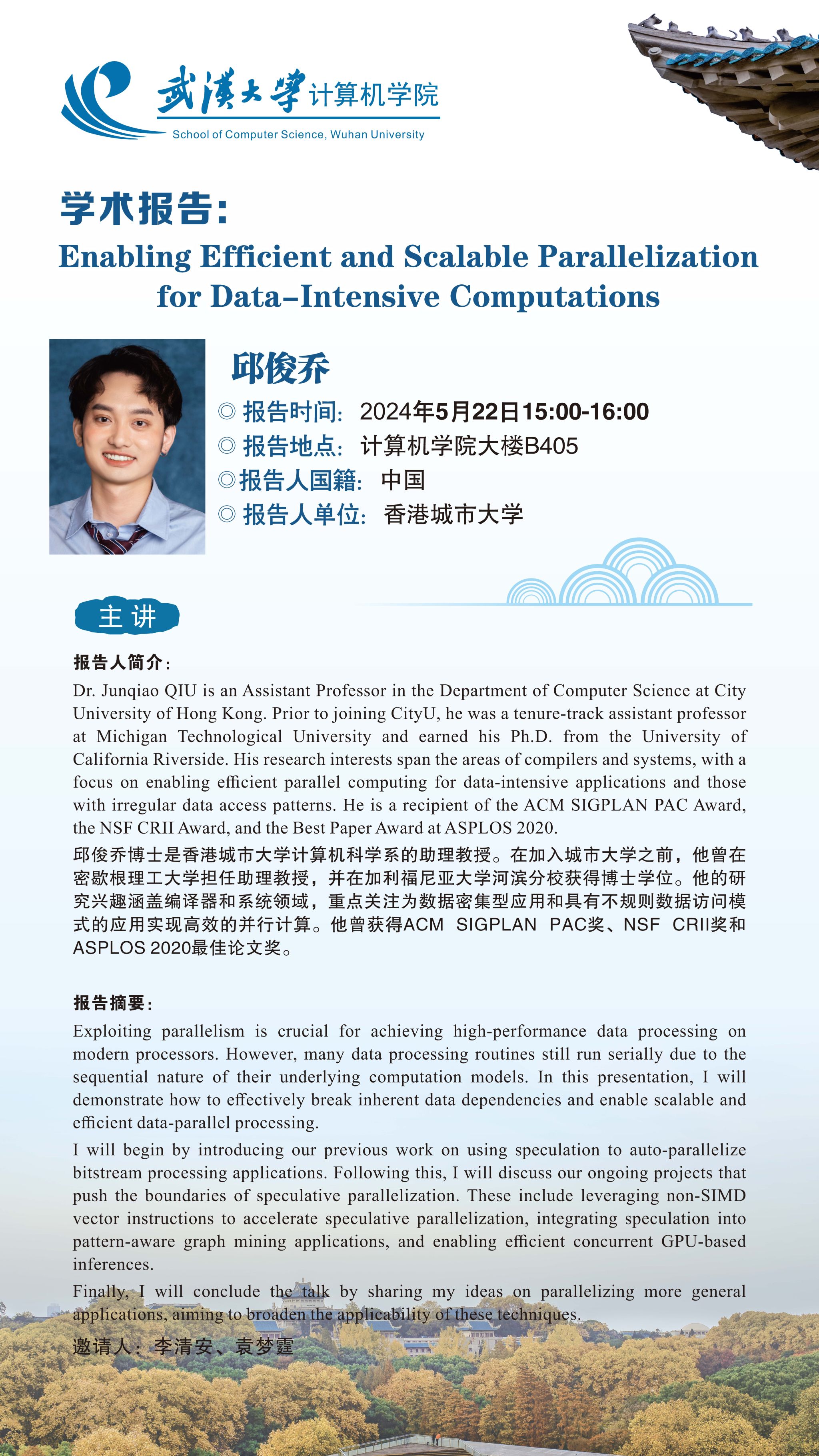 报告题目:Enabling Efficient and Scalable Parallelization for Data-Intensive Computations