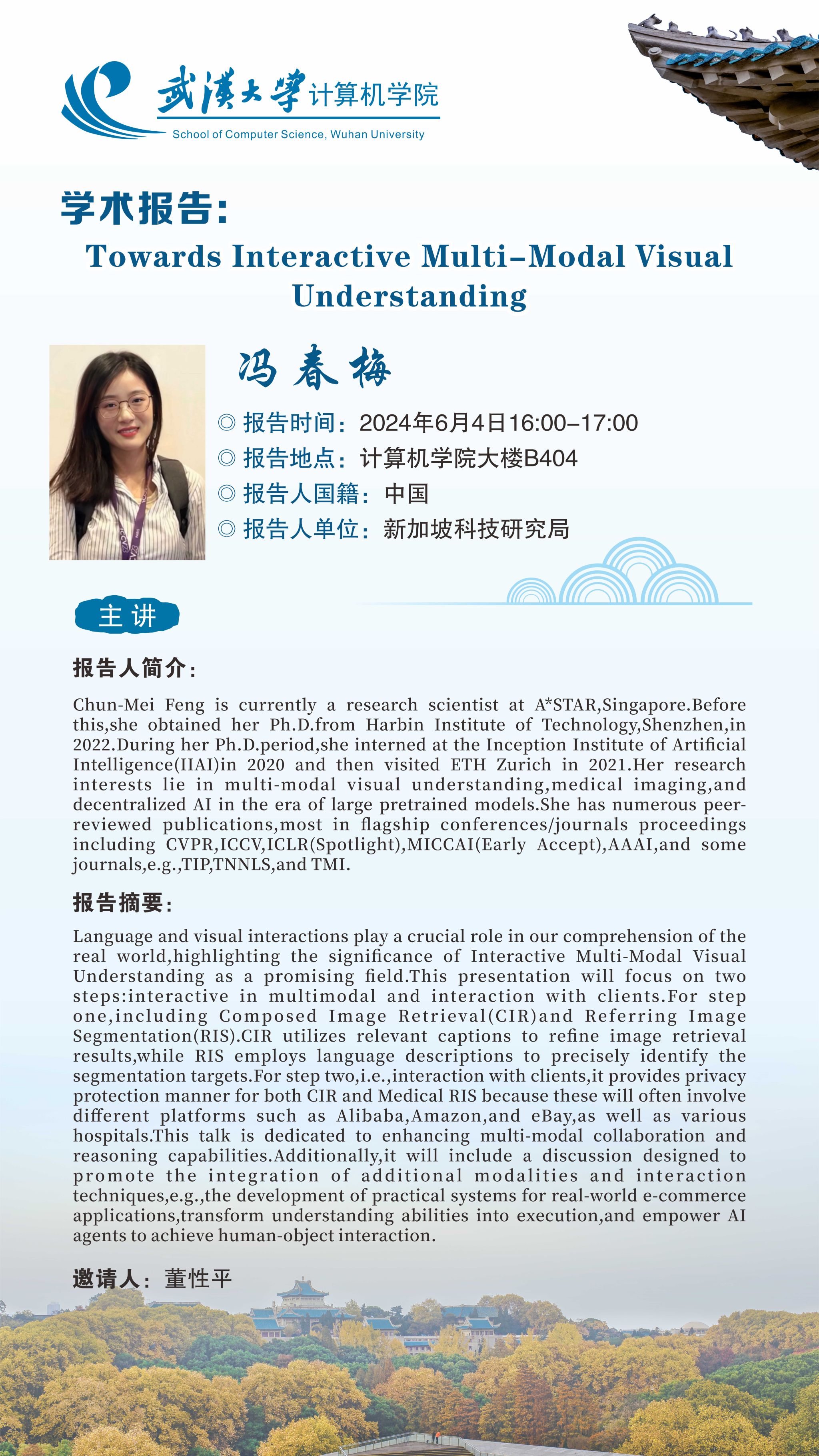 报告题目: Towards Interactive Multi-Modal Visual Understanding