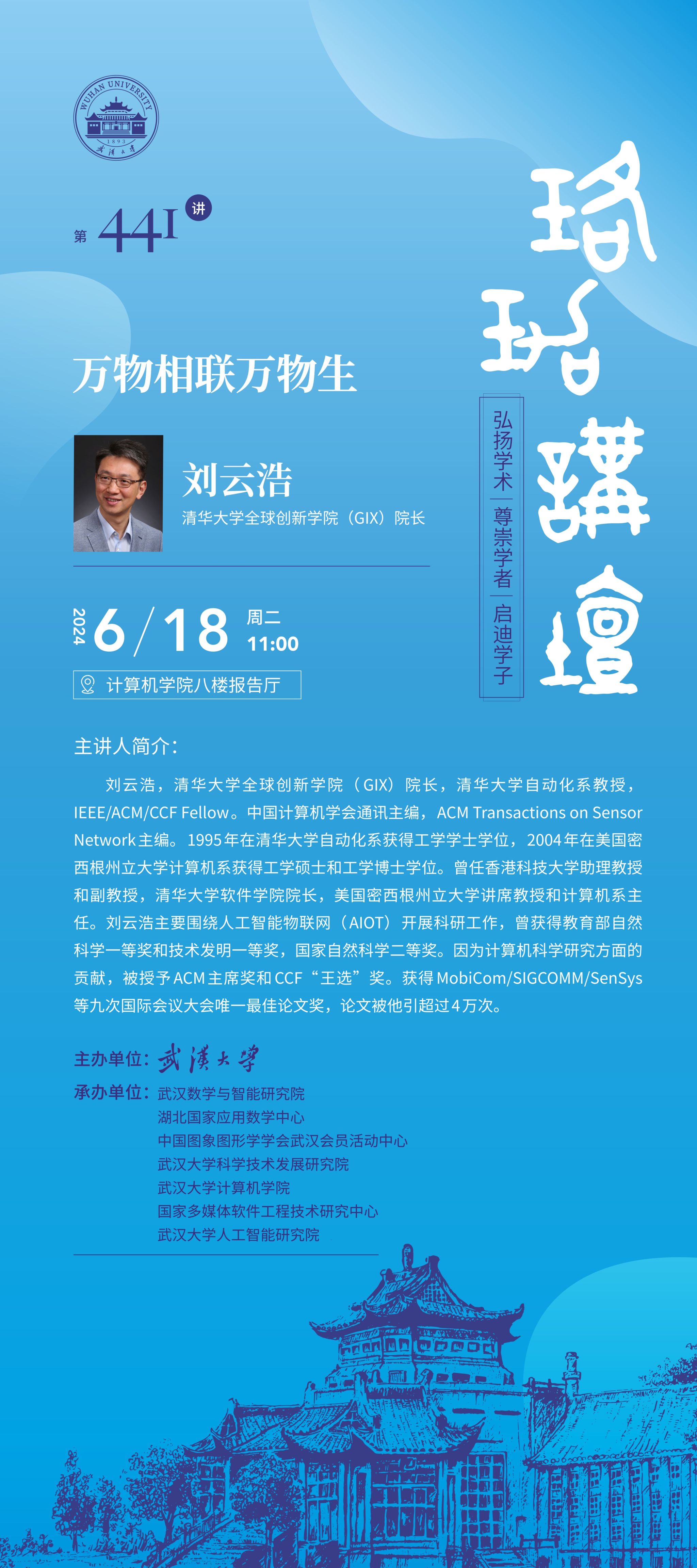 刘云浩,清华大学全球创新学院(GIX)院长,清华大学自动化系教授,IEEE/ACM/CCF Fellow。中国计算机学会通讯主编,ACM Transactions on Sensor Network主编。1995年在清华大学自动化系获得工学学士学位,2004年在美国密西根州立大学计算机系获得工学硕士和工学博士学位。曾任香港科技大学助理教授和副教授,清华大学软件学院院长,美国密西根州立大学讲席教授和计算机系主任。