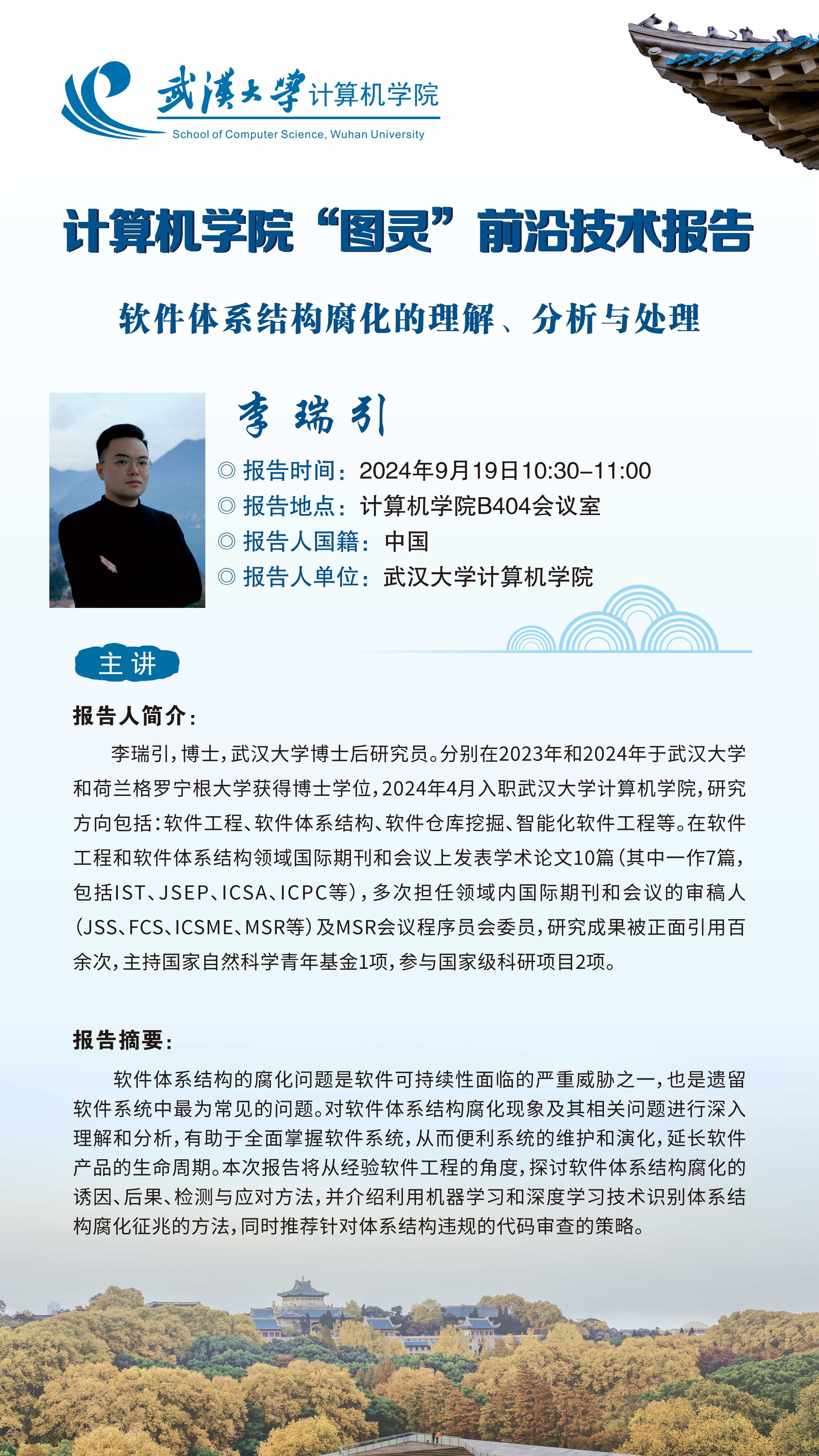 报告摘要:软件体系结构的腐化问题是软件可持续性面临的严重威胁之一,也是遗留软件系统中最为常见的问题。对软件体系结构腐化现象及其相关问题进行深入理解和分析,有助于全面掌握软件系统,从而便利系统的维护和演化,延长软件产品的生命周期。本次报告将从经验软件工程的角度,探讨软件体系结构腐化的诱因、后果、检测与应对方法,并介绍利用机器学习和深度学习技术识别体系结构腐化征兆的方法,同时推荐针对体系结构违规的代码审查的策略。