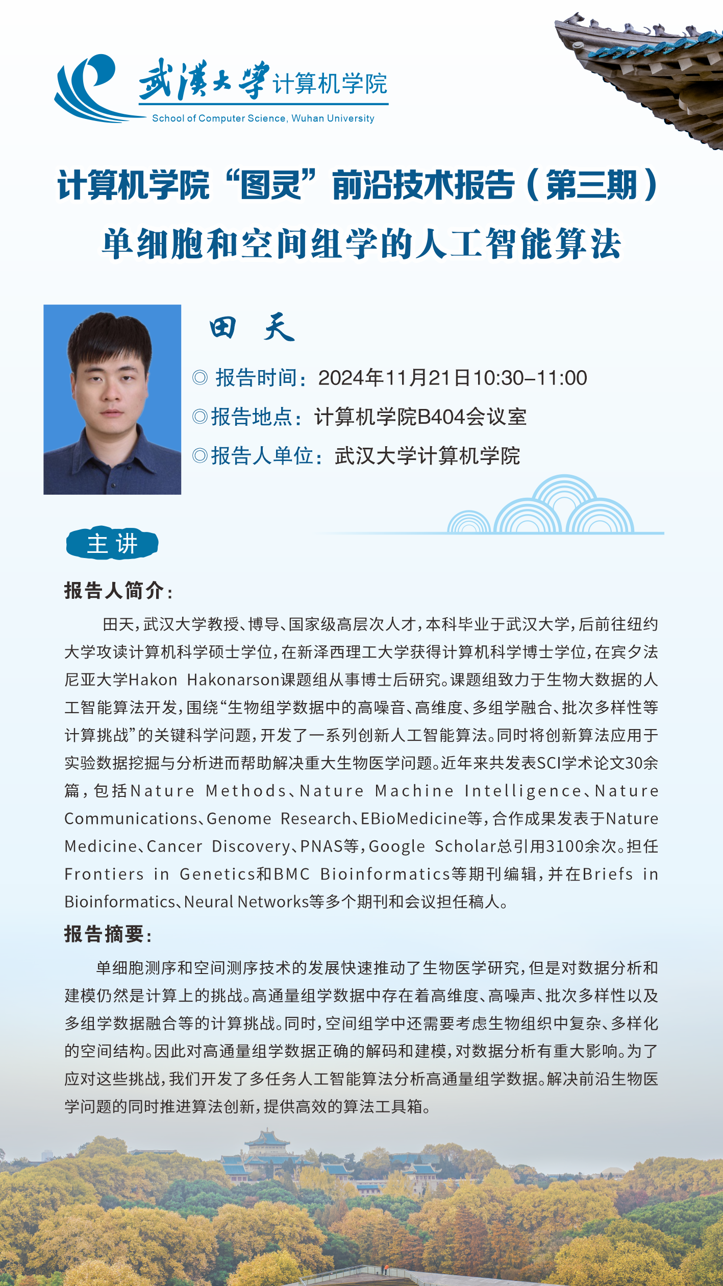 报告一题目:单细胞和空间组学的人工智能算法