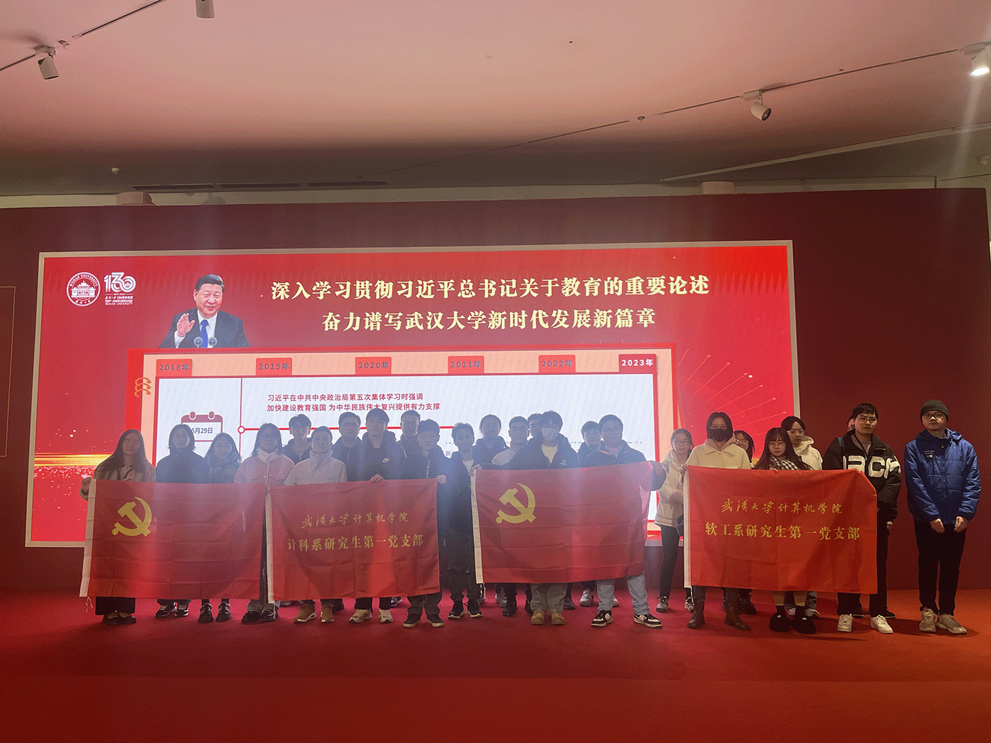 智软服务研究生党支部、智能感知实验室研究生第一党支部、智能感知实验室研究生第二党支部组织支部党员参观了学院一楼大厅的荣誉墙,回顾计算机学科发展历史和取得的各类优秀成果,凝练武大计科人不断奋斗的精神气质,参与的同志表示要以优秀的前辈为榜样,不断努力,为计算机学科的发展做出更大的贡献!博士研究生党支部、2022级硕士研究生党支部,2023级研究生党支部,软工系研究生第二党支部,智能感知实验室研究生第二党支部均以党课形式对第一会所