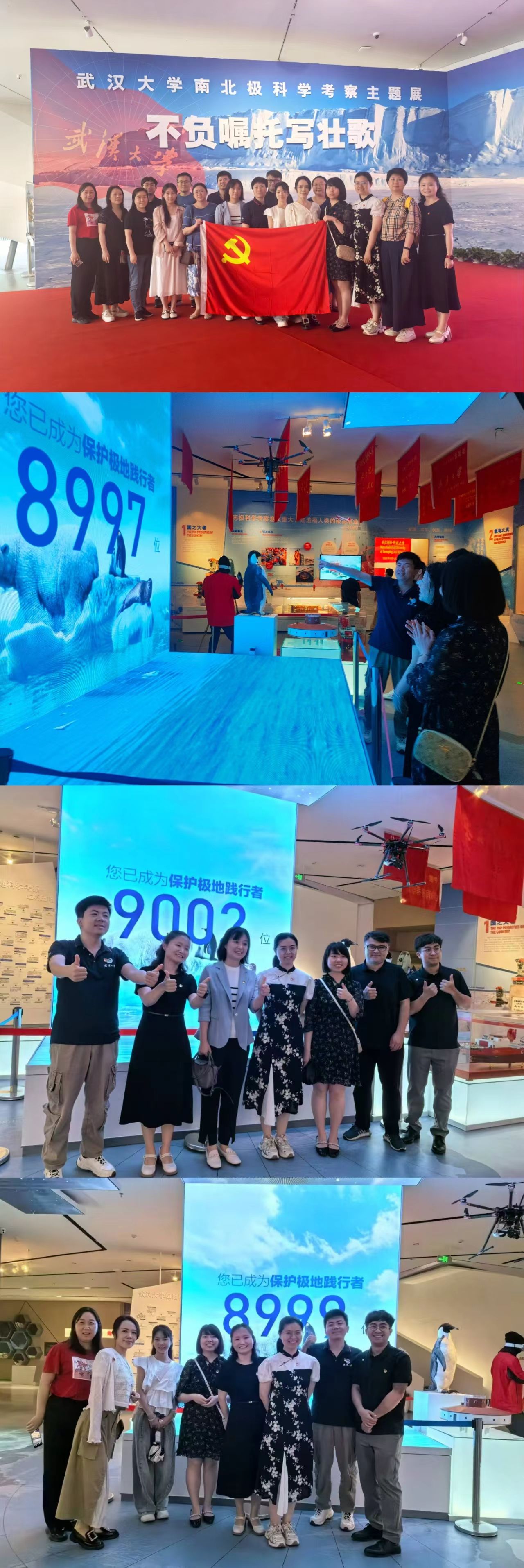 会后,全体党员赴万林艺术博物馆参观了“南北极科学考察主题展”。展厅由“卌年岁月,武大人前赴后继”“领军育才,科考成就多首创”“极地治理,多元学科共助力”和“冰雪探秘,生物标本快来认”四个单元组成,展示了武大科考队员在南北极科考中和面临的挑战及取得的辉煌成就,展现了科学探索的艰辛与不易。党员们为武大人不畏艰难、勇攀高峰的精神深受感染,深刻体会到科学探索对于国家发展和人民福祉的重要意义,深刻体悟到习近平总书记对武大参加极地科考师生代表的回信精神,立志做好管理服务工作,在“立德树人”的大事业中,自立自强,勇挑重担,助力学院为党和国家培养更多计算机类人才。