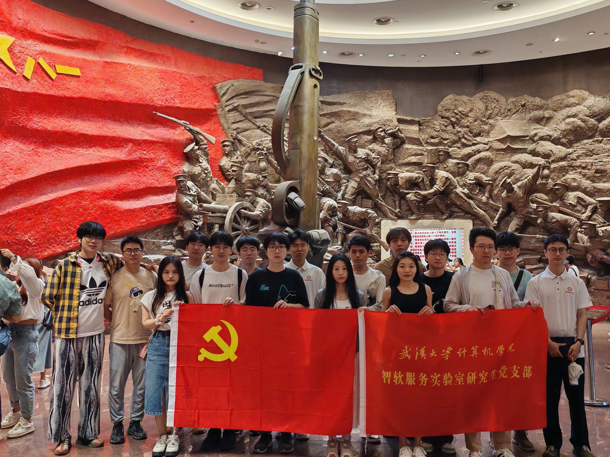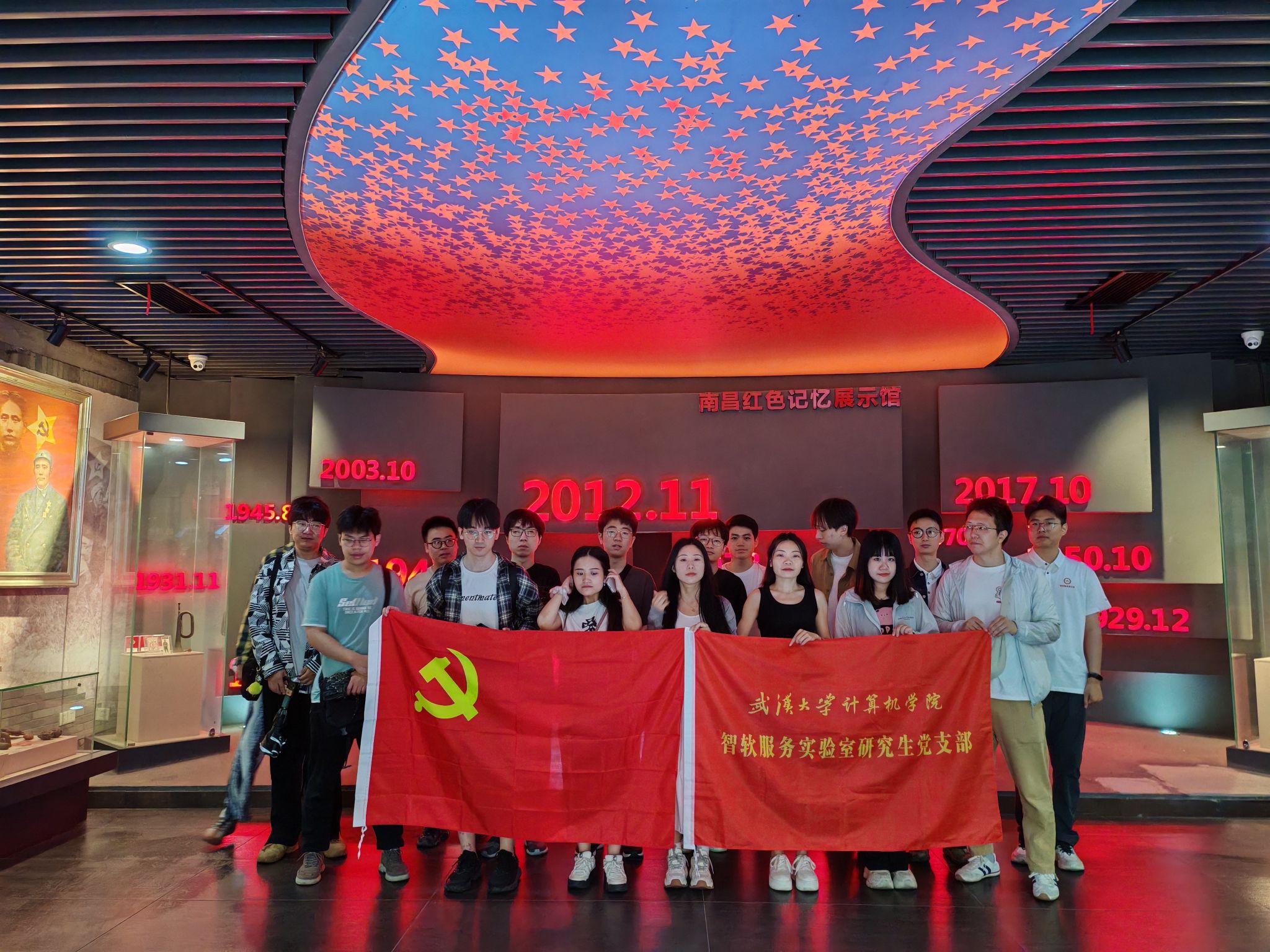 智能化软件与服务工程实验室研究生党支部组织支部党员骨干和部分团员、群众,与武汉计算机软件工程学会党支部及学院部分本科生党员于5月31日至6月2日共赴南昌开展了“红色土地孕育实景课堂,红色纽带聚力大思政建设”红色研学。在实景课堂上,师生联学,本硕博党员共上一节党课,共同品读传统文化,深入党纪学习教育,缅怀革命先烈,弘扬革命精神,传承红色基因,赓续红色血脉。