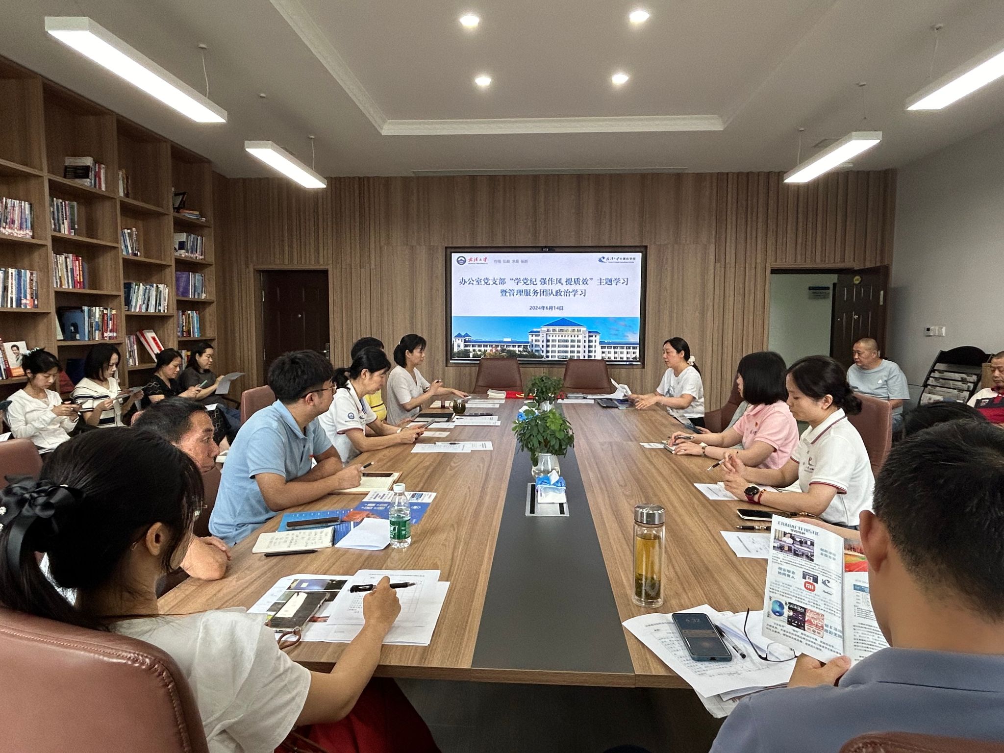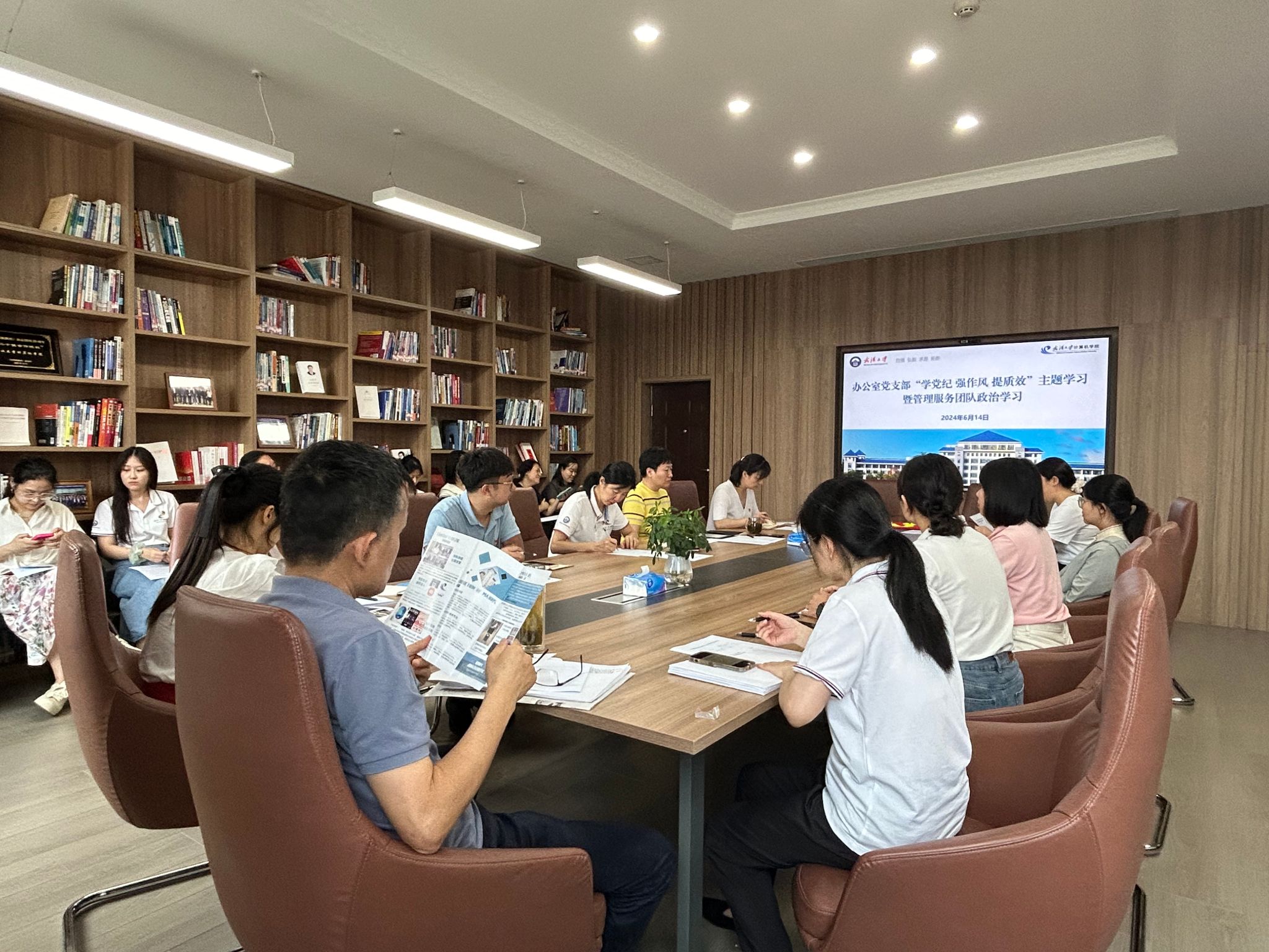 办公室党支部在A403会议室召开“学党纪 强作风 提质效”主题学习会,集体学习《中国共产党纪律处分条例》。办公室党支部成员和和全体行政管理人员参加了学习会。会议由党支部纪检委员张文俊主持。