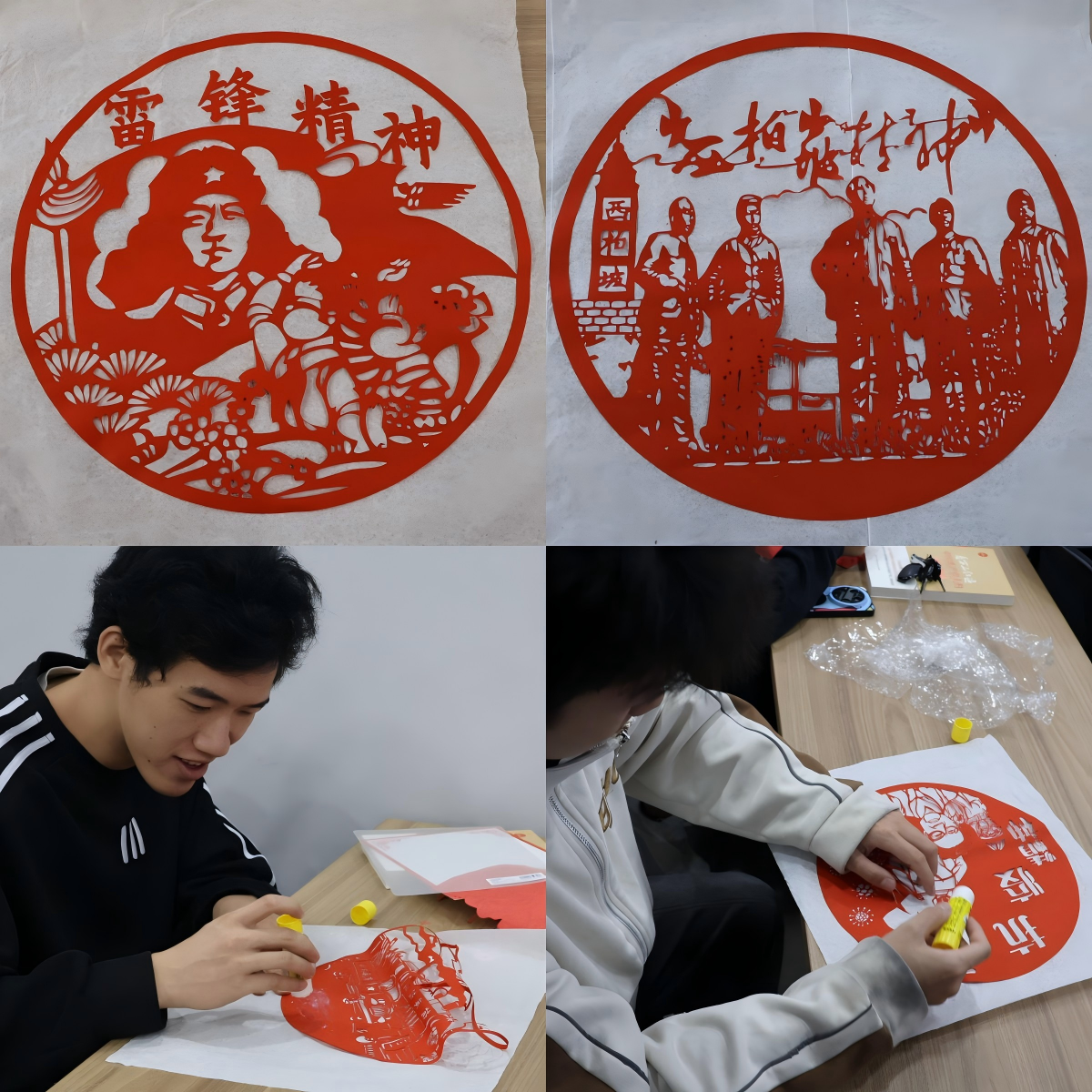 学思践悟精神谱系,红色剪纸述说党情。智能感知实验室研究生第二党支部书记史珂首先以“中国共产党人的精神谱系:深入学习伟大建党精神”为题,从伟大建党精神形成的历史背景到其科学内涵及时代意义进行了深入浅出的讲解。支部成员开展《中国共产党人的精神谱系》读书会,围绕书中的学习感悟展开讨论,分享那些触动心灵的瞬间,以及党的精神谱系对当代青年学子成长和工作的重要启示。随后,依托传统红色剪纸的认知、教化、表意、抒情等社会价值,支部成员运用剪纸的视觉形象和造型特色,抒发青年学子对党对国家的热爱之情,深刻领悟中国共产党人坚定的理想信念和顽强斗争的精神,用手中的剪刀和红纸,剪出对党的热爱,剪出对先辈的敬仰,完成对红色文化的一次深情诠释。