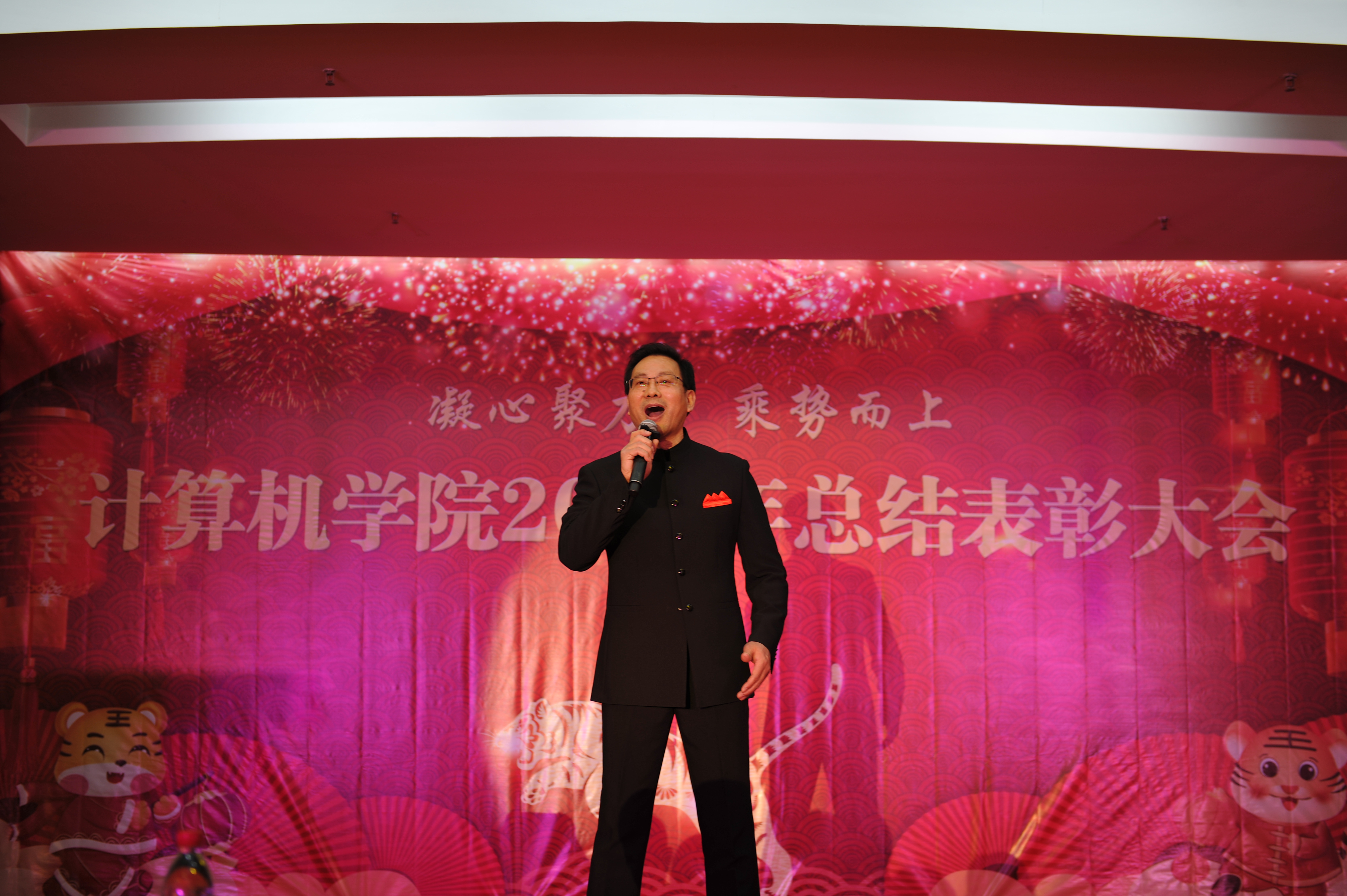 表彰大会结合了往年年终总结会传统元素,颁奖期间还穿插了五个精彩节目的表演与两轮幸运大抽奖。学院办公室工会小组为建党百年华诞献上的伴舞诗朗诵《百年初心精神 沐浴党的光辉》,气势恢宏,振奋人心,舞姿曼妙,婀娜多姿,瑜伽俱乐部舞蹈《追光者》,动作标准,游刃有余,翩若惊鸿,婉若游龙,杜建伟老师歌曲《滚滚长江东逝水》声如洪钟、荡气回肠,研究生演唱《风吹麦浪》歌声婉转动听,天籁之音,曹建文老师歌曲《把一切献给党》真情实意,寓意深刻。两轮幸运大抽奖环节,将大会推向了高潮。