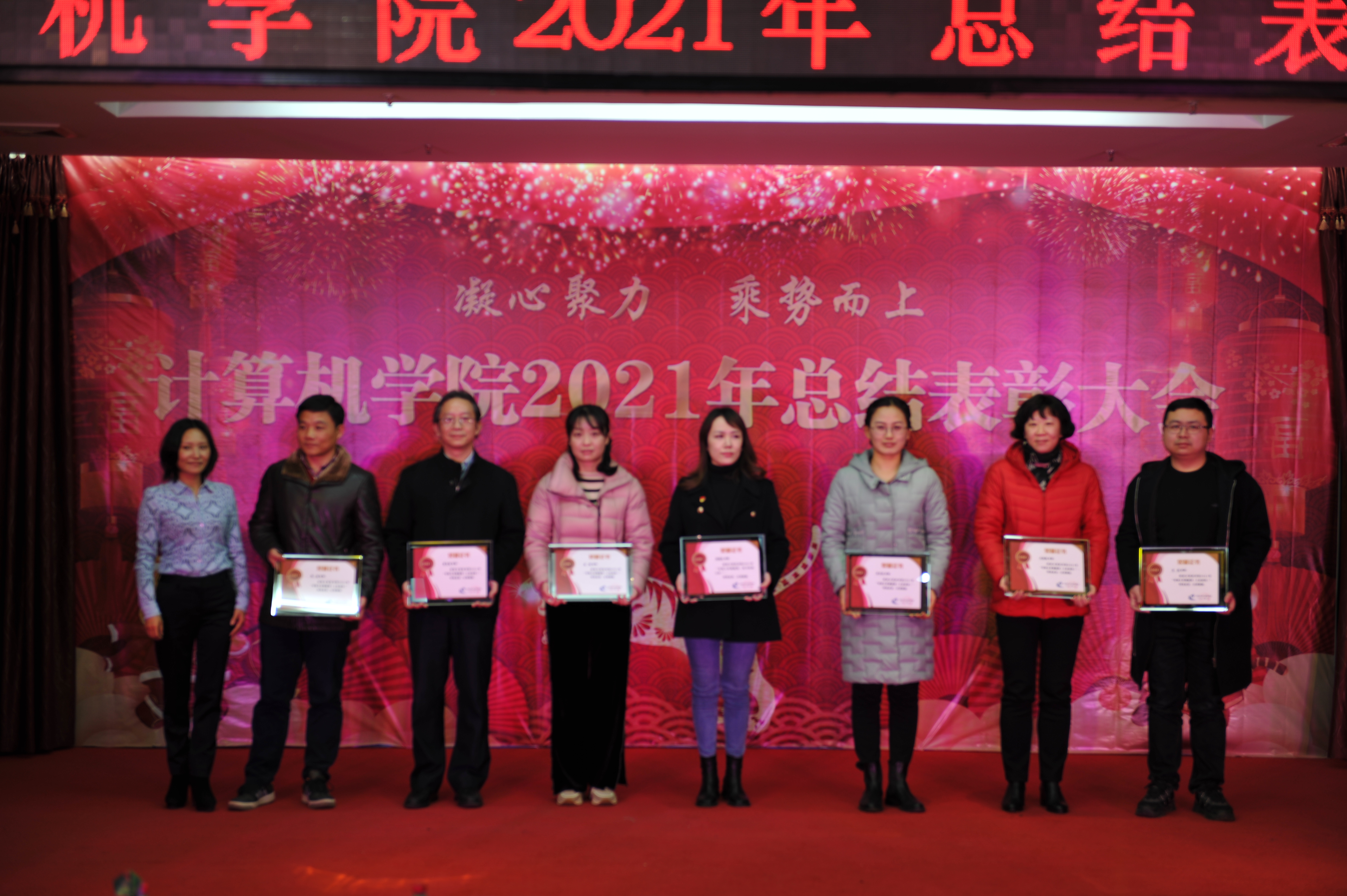 随后,表彰大会在喜庆的音乐和热烈的祝贺声中拉开序幕。大会表彰了在人才培养、科学研究、管理服务等工作中致力于学院发展的优秀教职员工99人,179人次。其中表彰奖项包括:师德标兵3人,特别贡献奖4人,杰出教学贡献院长奖10人,本科生优秀指导教师奖10人,优秀导师奖18人,留学生优秀任课教师4人,留学生研究生优秀指导教师4人,高水平论文奖16人,科研经费领先奖10人,科研经费进步奖10人,科研成果突破奖1人,科研项目突破奖1人,成果转化突破奖1人,人才称号获得者4人,省级以上奖项获得者1人,招才引智奖8人,工程教育认证工作奉献奖13人,特色化示范性软件学院申报工作奉献奖9人,学科评估工作奉献奖13人,工会活动奉献奖6人,实习实训奉献奖1人,网络改造奉献奖1人,优秀班级导师15人,优秀辅导员6人,优秀实验员2人,管理服务金牛奖8人。颁奖嘉宾分别为优秀个人逐一颁发荣誉证书并合影留念。