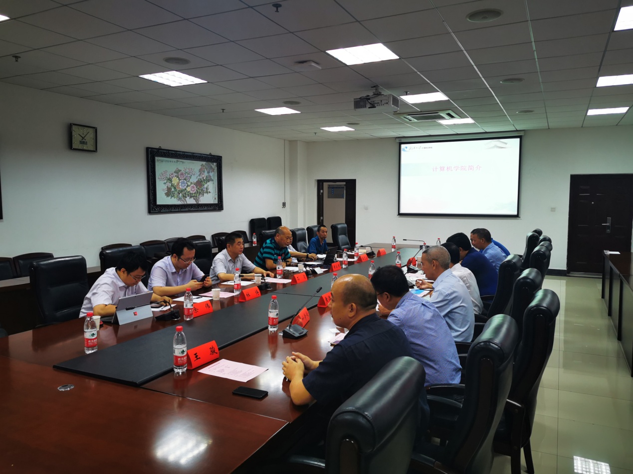 党委书记黄治国随后向来访人员介绍了我院发展概况与科研情况,各主要科研团队以及人工智能、大数据、智能化软件、软件服务工程、位置服务等方面的创新研究成果。