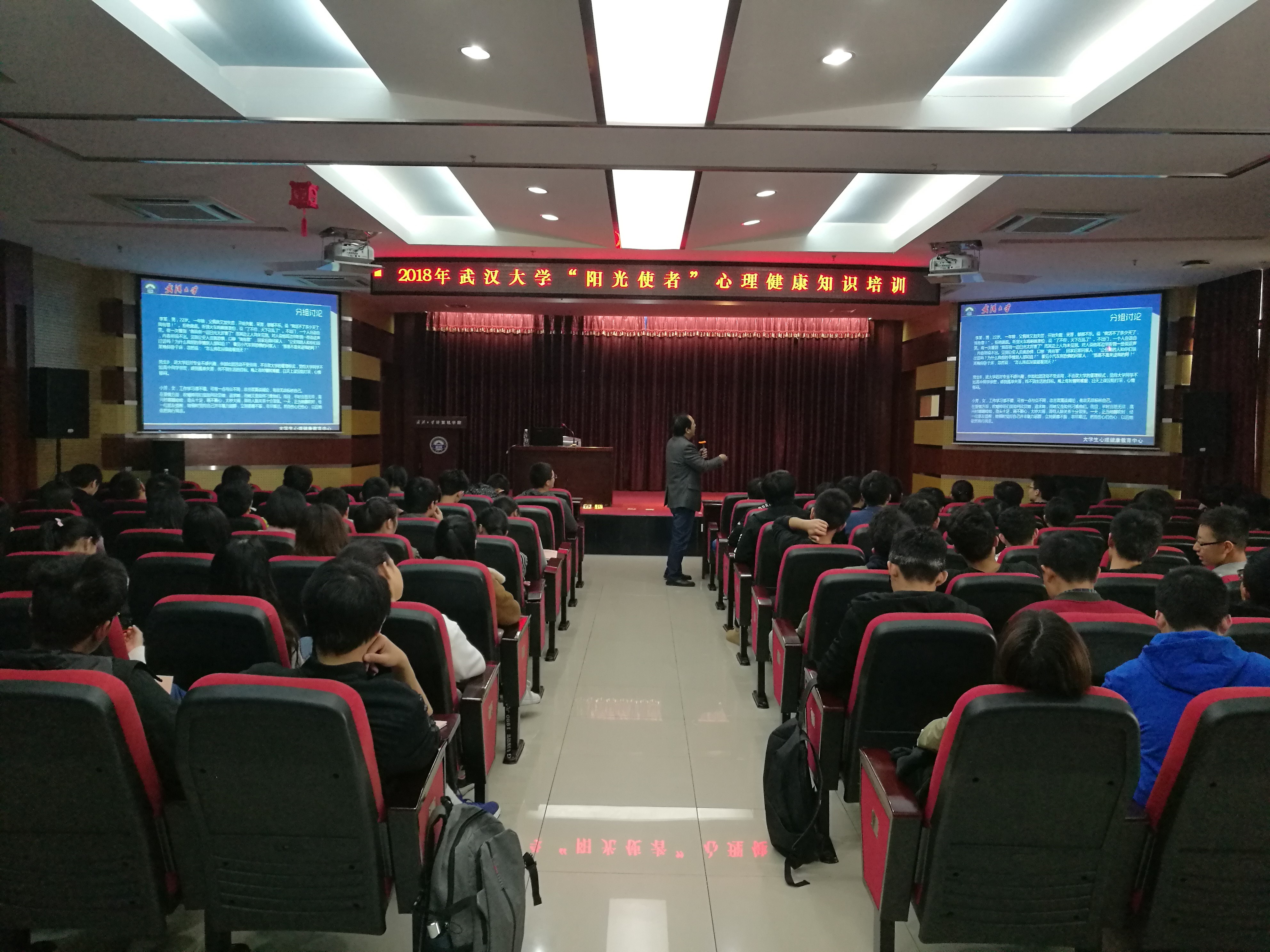 牵头,与电子信息学院共同举办的“阳光使者”心理健康培训于2018年4月22日在第一会所