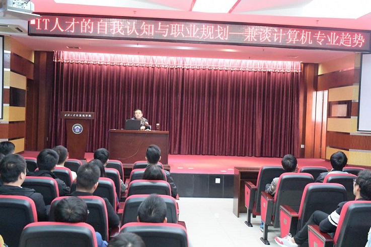 “IT人才的自我认知与职业规划——兼谈计算机专业优势”职业规划生涯讲座在学院八楼报告厅隆重举行。讲座由院学生工作办公室主任赵健老师主讲,副院长彭正明主持,学院2017级非全日制全体硕士研究生参加了此次讲座。