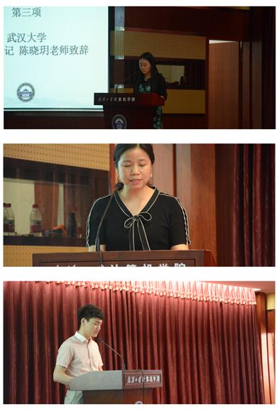 陈晓玥老师、胡俊英老师以及杨学兵同学分别代表校团委、院党委和校研究生会致辞。陈书记对我院研究生代表大会的顺利召开表示热烈的祝贺,对我院研究生会的工作进行了充分的肯定和殷切的期望。胡书记回顾了研会一年来取得的主要成绩,并希望研究生会能够继续紧密围绕学校中心工作,主动贴近我院研究生实际,不断强化“自我教育、自我管理、自我服务、自我监督”职能,切实发挥桥梁纽带作用。杨国兵同学代表校研究生会肯定了我院研究生会的各项工作,并对即将产生的新一届研究生会主席团提出了工作建议。