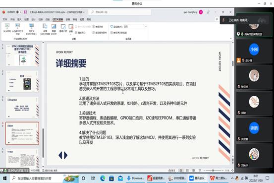 创新授课方式,激发学习兴趣。停课不停学,学生的课堂由教室转向“云”端,如何把课上得更吸引屏幕那头的学生,并让他们在课程结束之后有所收获,成为学校和老师们的共同目标。为了充分调动同学们的学习热情和参与积极性,任课老师对在线授课模式不断进行探索创新,努力增强授课的“吸引力”。赵小刚老师本学期负责教授《嵌入式软件设计》课程,为了激发同学们的学习兴趣,他从课程设计到内容讲授都坚持“参与性”原则,利用微信、腾讯会议等媒介,在课堂中增加随机提问、问题讨论的比重,通过组织学生读论文,小组汇报,教师点评的方式充分调动学生参与的积极性。线上课程直播尽管在环境、网络上有些许不便,但不一样的授课形式仍然可以呈现出诸多优势和趣味,让同学们对学习更有兴趣。