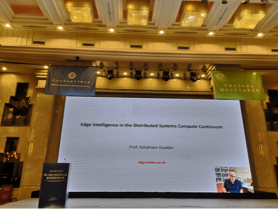 Schahram Dustdar教授的线上报告题目为“Distributed Intelligence in the Computing Continuum”,介绍了现代分布式系统的处理环境、基础设施和应用程序广泛多样化的不确定性,以及在物联网边缘雾云计算的范围内,如何利用这些启发式的原理和机制帮助构建更灵活的分布式系统解决方案,并在不同的环境中进行推广。