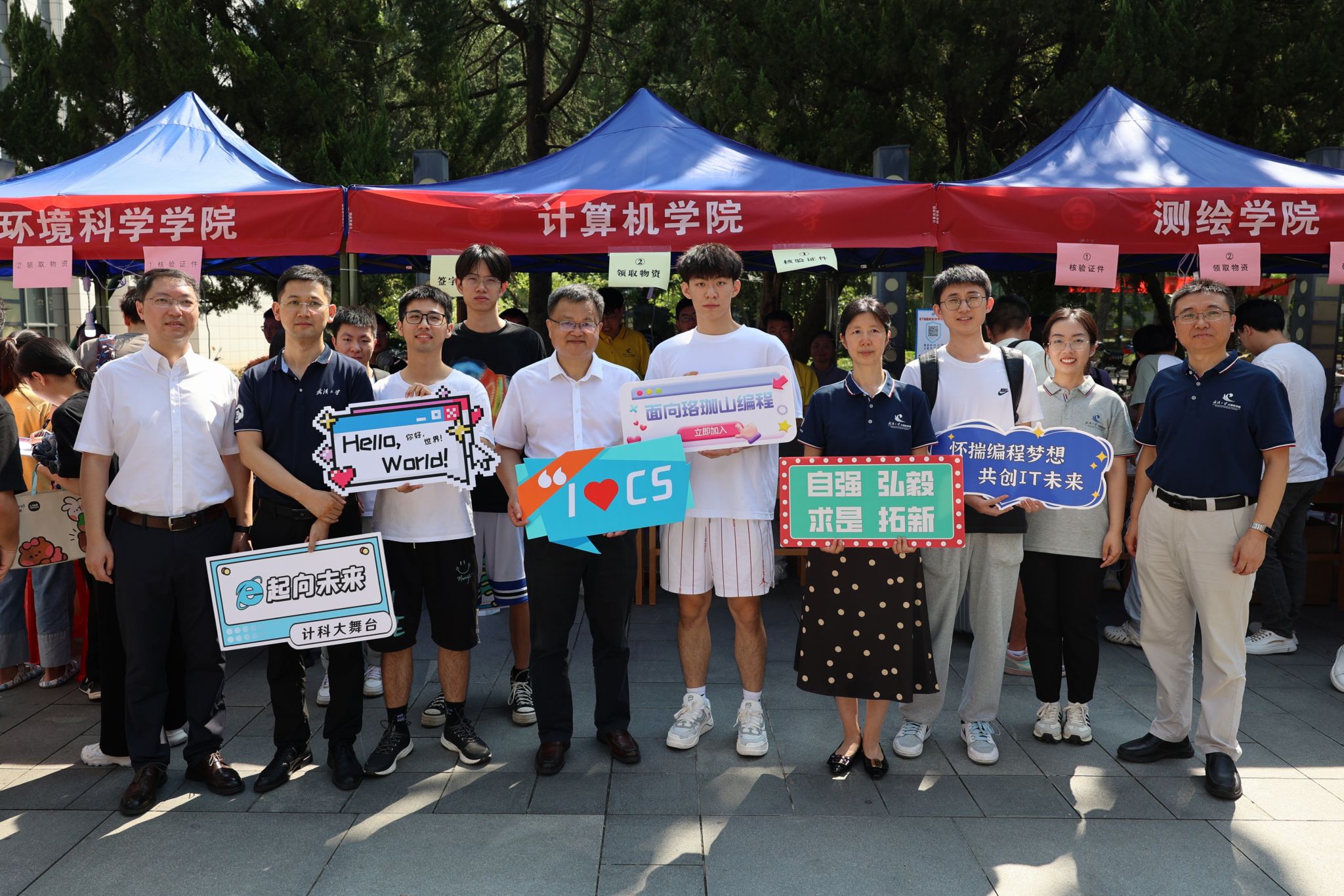 迎新点,考察了解学院迎新情况,慰问迎新工作人员,并与新同学们进行了亲切友好的交流,留下了珍贵的合影。