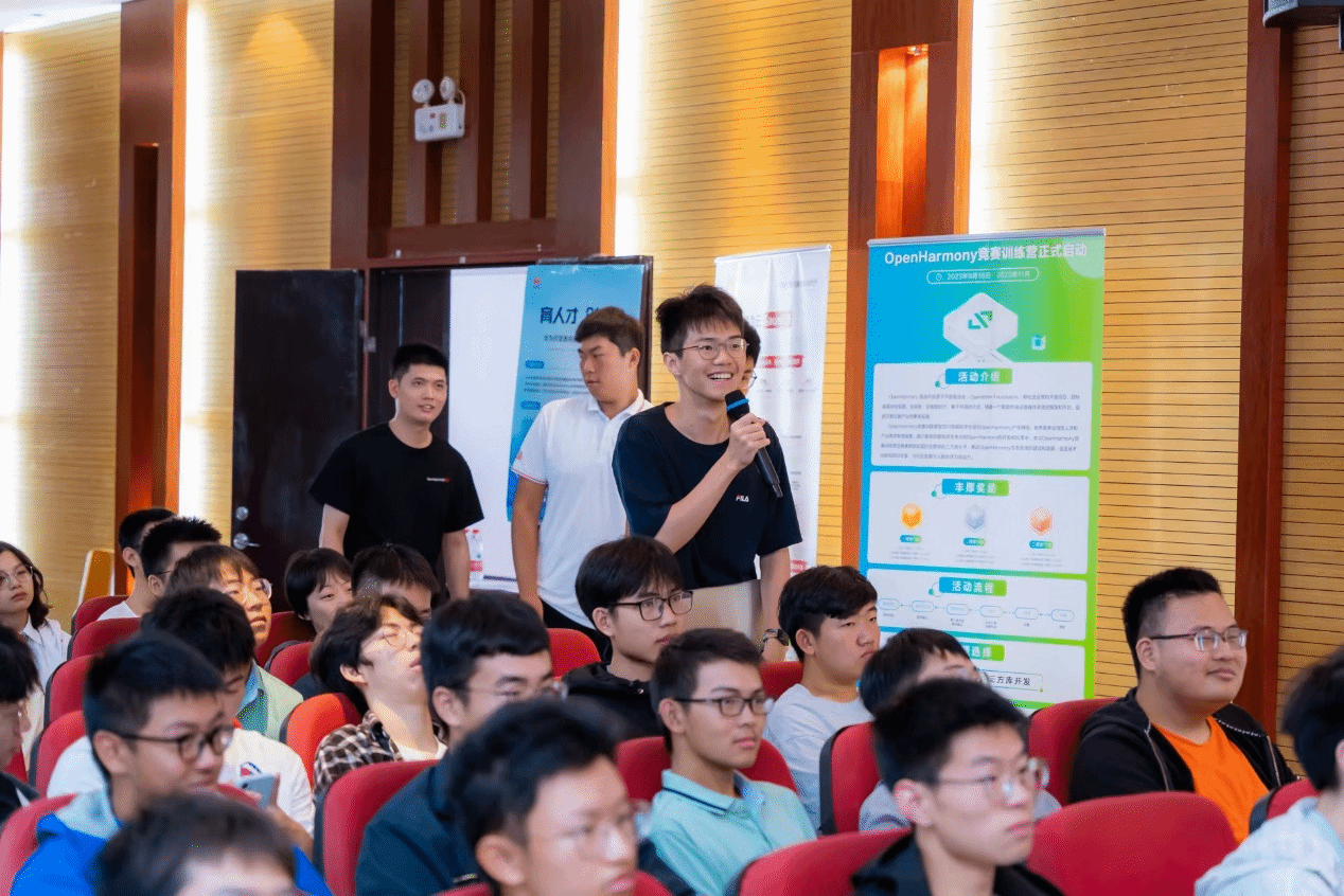 学院赵小刚老师分享了自己与华为公司在校企共建鸿蒙人才培养生态上的工作,华为公司相关专家也就对华为公司OpenHarmony操作系统和GaussDB数据库的特性和基本能力做了分享。分享过程中学生对国产操作系统和数据库相关功能表现了极大兴趣,并就专家的提问积极发言,活动现场气氛热烈。