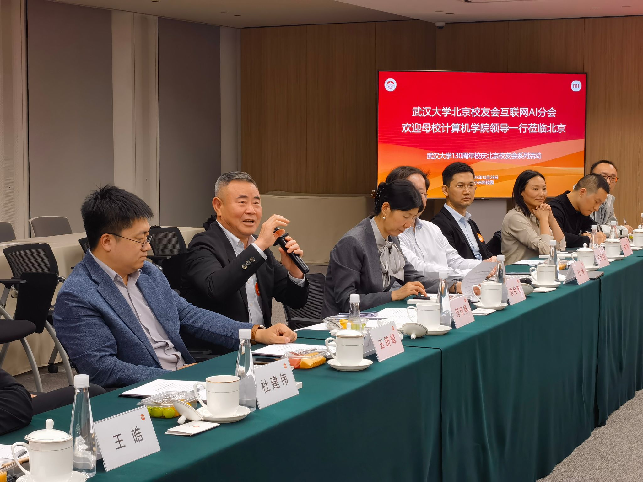 崔宝秋会长对母院和武汉校友会计算机分会一行的到来表示真切欢迎,对母院的关心和重视表达了衷心感谢。他表示,母院近年来蓬勃发展的势头令校友们深感振奋和自豪,校友企业将持续从人才培养、产学研合作等方面支持母院更上一层楼。最后,他表达了进一步加强北京互联网AI分会与母院和武汉校友会计算机分会常态化互动交流的期待。