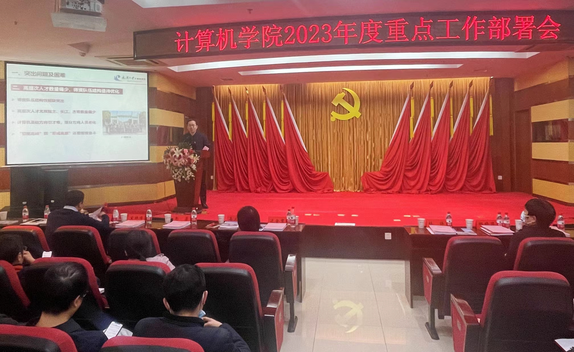 杜博院长从“突出问题及困难、本年度工作思路、思政工作重难点、保密安全工作”四个方面着手,深入剖析了学院存在的突出问题和困难:人才培养机制有待完善、教风学风尚需加强;高层次人才数量偏少,师资队伍结构亟待优化。详细梳理了年度工作思路:紧扣“学科建设年”,以立德树人为根本、以队伍建设为核心、以体制机制优化为动力、以国家战略需求为导向。重点强调要将党建与业务深度融合,结合学校“学科建设年”主题和学院改革发展实际,从党建引领加强顶层设计、加强教师和人才队伍建设、提升教学质量和人才培养质量、开展有组织科研提升科研工作水平、加强全方位保障支撑提升治理等方面重点发力。同时,对学院思政工作重难点如“构建学风建设支撑系统、加强课程教学过程管理、完善助教制度、压实班导责任、做好价值引领、加强就业教育”等进行了深入分析,对保密工作制度化、体系化、规范化建设再次部署和强调。