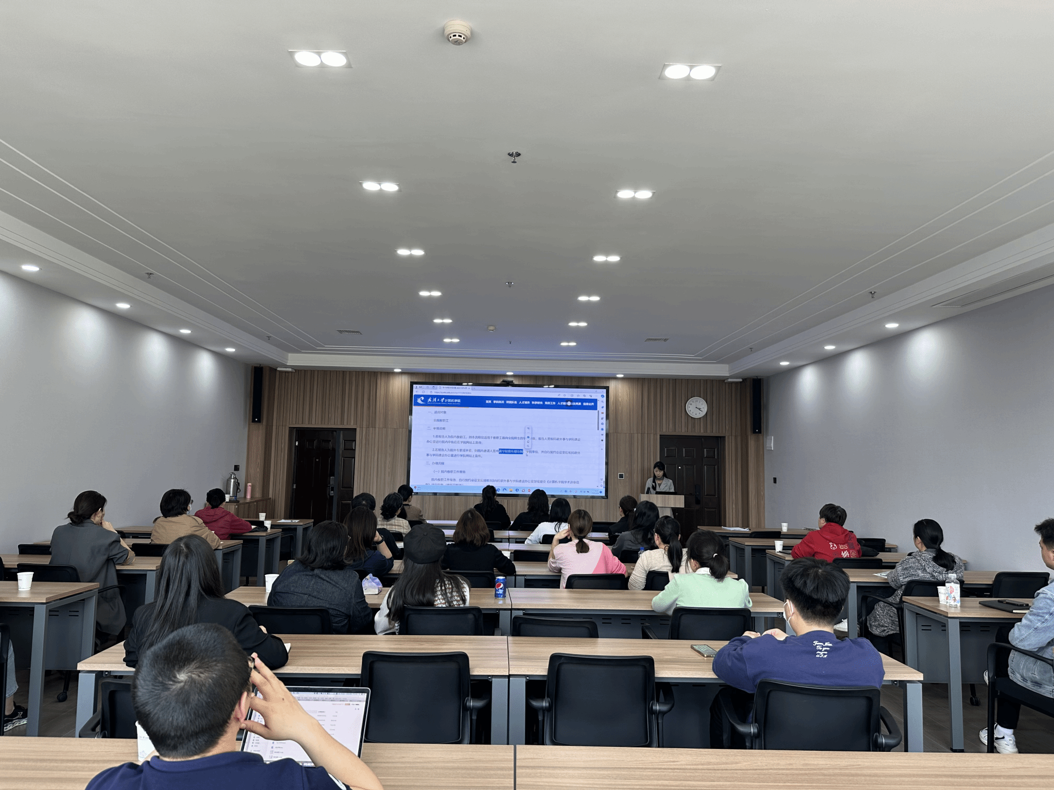 屈鹏就人事制度政策、各类行政业务办理流程进行了宣讲,孙琳、邹瑶分别对外事政策、教师因公出国出境办理流程、项目申报注意事项等方面作了详细介绍。