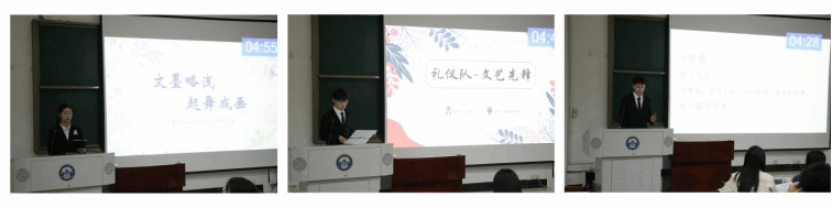 礼仪队则从服装设计和T台走秀两个方面分享着团队的成长故事;候选人史非同学的答辩更像是讲述着他与文艺的故事,通过参与校广播电台、学生会等组织的文艺活动,将自己对文艺的理解带入校园实践中。
