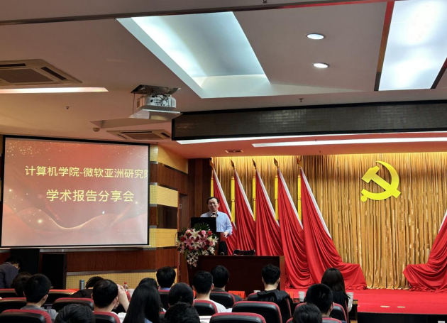 介绍我院相关科研情况。微软亚洲研究院资深学术合作经理石贝贝介绍了研究院的文化、发展历程、全球布局、外部协作、人才培养项目和访问学者项目等。石贝贝经理表示微软亚洲研究院致力于与亚洲高校深度合作推动计算机领域的人才培养,为世界计算机科学领域培养一流人才。第一会所