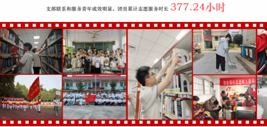 支部始终坚持开展志愿服务和红色研学活动,传承红色基因,奉献青春力量。从李先念故居到黄麻起义纪念园,他们用脚步丈量着党团文化发展的历程;从红色党务见习到绿色乡村振兴,他们用热情诠释了新时代青年的内涵。在校园内,他们开展环境整治活动,清理垃圾、美化校园、整理书籍,为同学们营造良好的环境;在贫困山区,他们义务支教,用知识和关爱点亮孩子们的未来,助力他们走出大山。团支部本年度志愿服务时长达到377.24小时,志愿服务参与率保持领先水平。