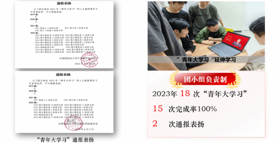团支部根据团员特点和需求设立了团小组,进行精细化管理,运行机制成熟,“三会两制一课”制度落实到位,团籍注册率达到100%。团支部秉承“班团一体,榜样引领”的理念,设立课业榜样、学术榜样、实践榜样、工程榜样,颁发荣誉证书,为同学提供学业帮扶、科研训练、志愿服务组织、工程能力提升以及就业指导,充分发挥朋辈引领作用。