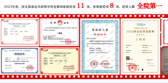 2023年,在学院党委的正确领导、学院团委的悉心指导下,2021级软工8班团支部始终牢记习近平总书记的回信嘱托,胸怀“国之大者”,练就过硬本领,以政治建设和思想引领为根本方向,以制度建设、学风建设和文化建设为抓手,以品牌活动为特色,取得多项支部建设荣誉和成果。