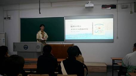 陈芃羽老师分享了她阅读《世界尽头的咖啡馆》的心得。她指出,无论什么阶段,人都会面临许多困难与选择,很容易陷入迷茫,但关键在于找到一个目标,确立一个方向。应当不断探索价值,去享受过程,在快节奏的时代中,也可以有意识的调整自我的节奏,适当地慢一点。