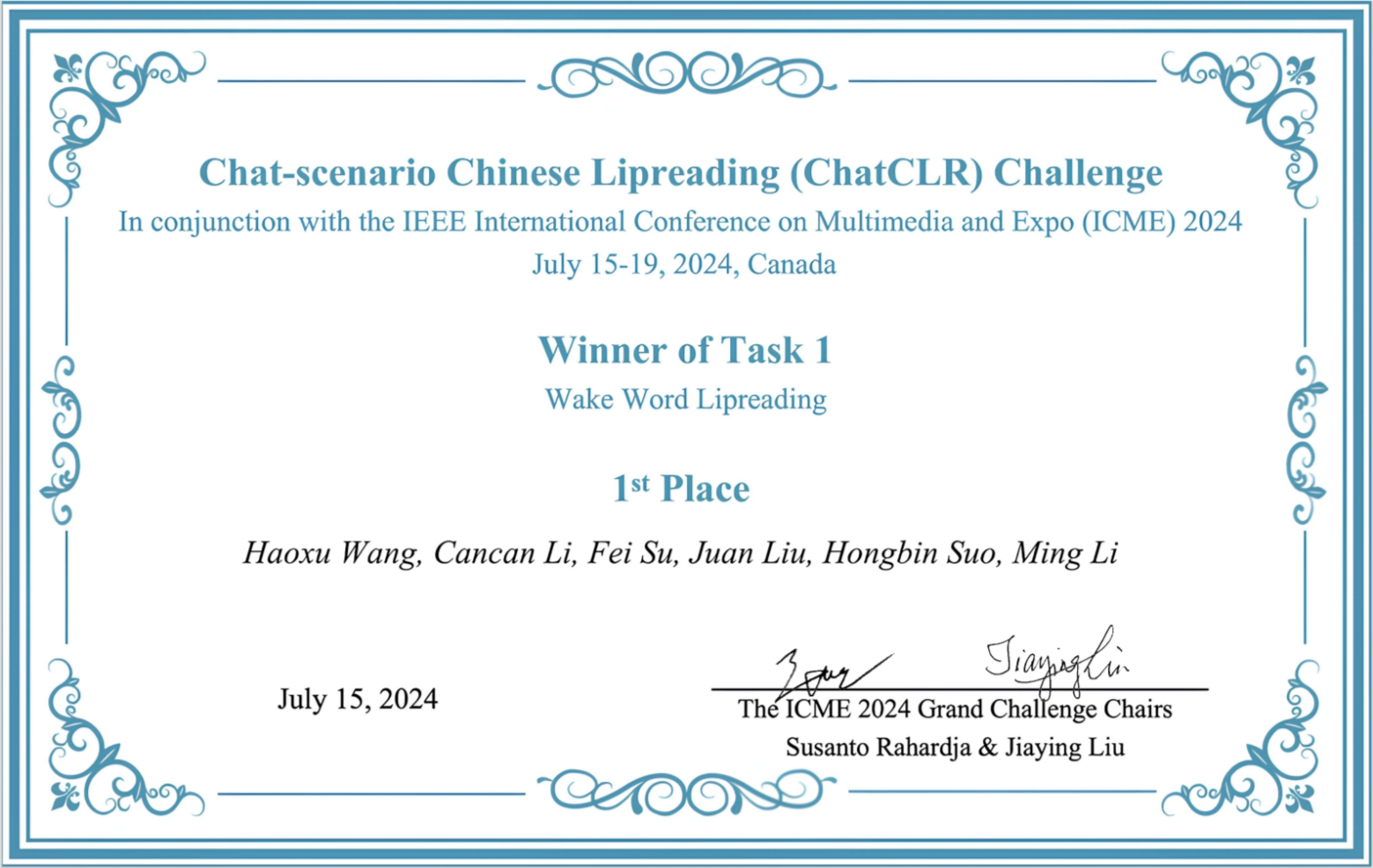 2024年1月至4月,IEEE ICME 2024挑战赛—中文对话场景唇读比赛(ChatCLR)顺利举行,第一会所