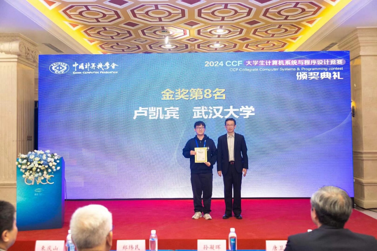 CCF理事长孙凝晖院士为卢凯宾同学颁奖