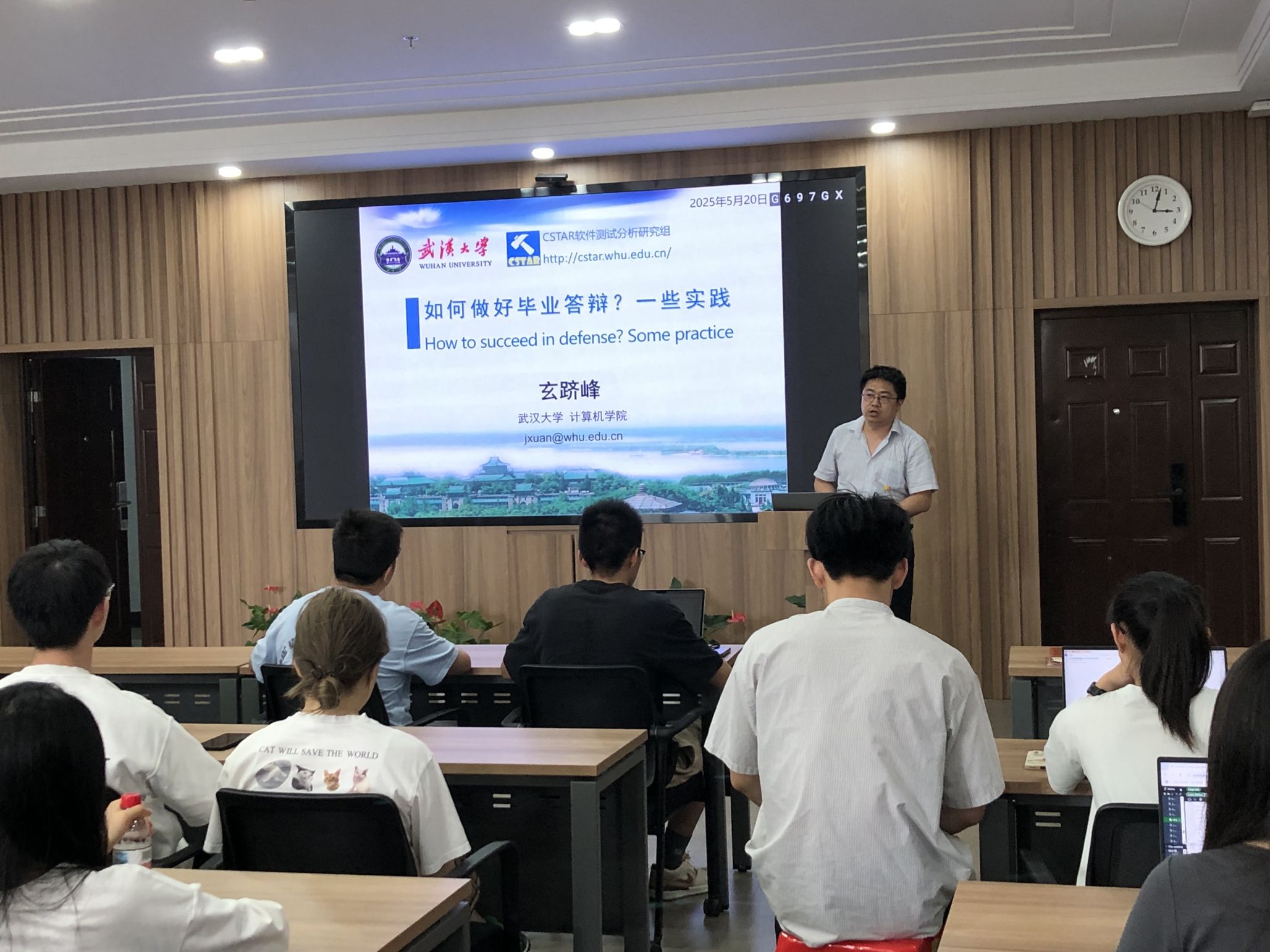 基础软件实验室研究生党支部联合智软服务实验室党支部,邀请学院副院长玄跻峰教授面向2025届研究生开展毕业答辩指导活动,通过“专家把脉+实战答疑”形式,助力研究生顺利通关“研途”。活动吸引了50余名毕业生参与,现场互动频频,气氛热烈。