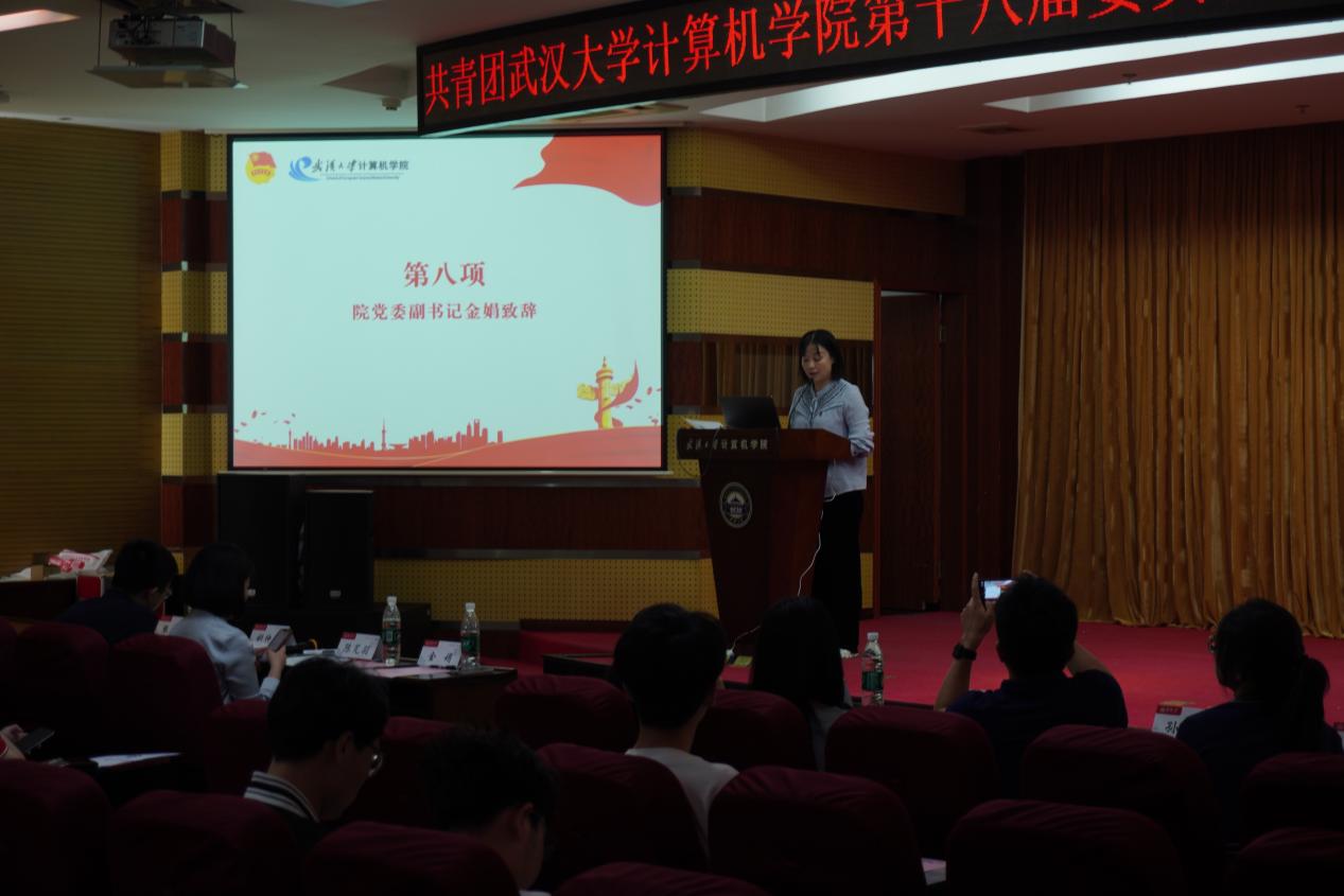 学院党委副书记金娟在致辞中充分肯定了共青团工作成果,她指出,学院团委以服务大局、服务青年为宗旨,开展了一系列丰富多彩的校园文化活动,取得多项国家级荣誉奖项,充分展现了计科青年的使命与担当。她强调,2025年是学校深化改革年,希望学院团委继续在深化基层团组织活力建设、打造学科特色文化品牌、完善科创成果转化机制上下功夫,以强国有我的使命感,融入国家发展大局,为青年成长搭建广阔舞台。她勉励全体团员青年牢记习近平总书记的殷切嘱托,以科技创新勇攀高峰,以社会实践锤炼品格,以此次大会为新的起点,在服务学院“双一流”建设和实现民族复兴中贡献青春智慧。
