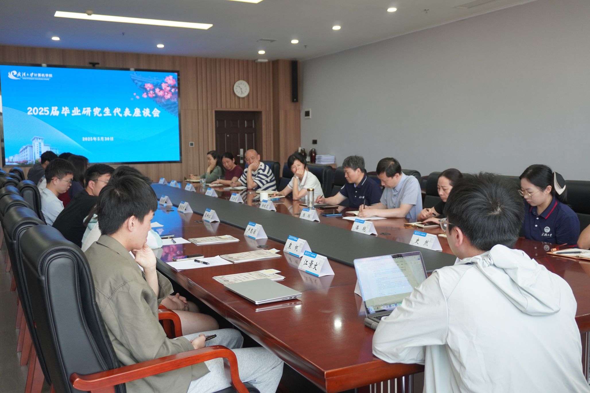 2025届毕业研究生代表座谈会在学院B405会议室顺利召开。学院党委书记边金鸾、党委副书记陈琛、纪委书记杨晓岚、副院长程大钊、研究生教学秘书、研究生辅导员及各毕业班学生代表共话成长,为学院发展建言献策。座谈会由陈琛主持。
