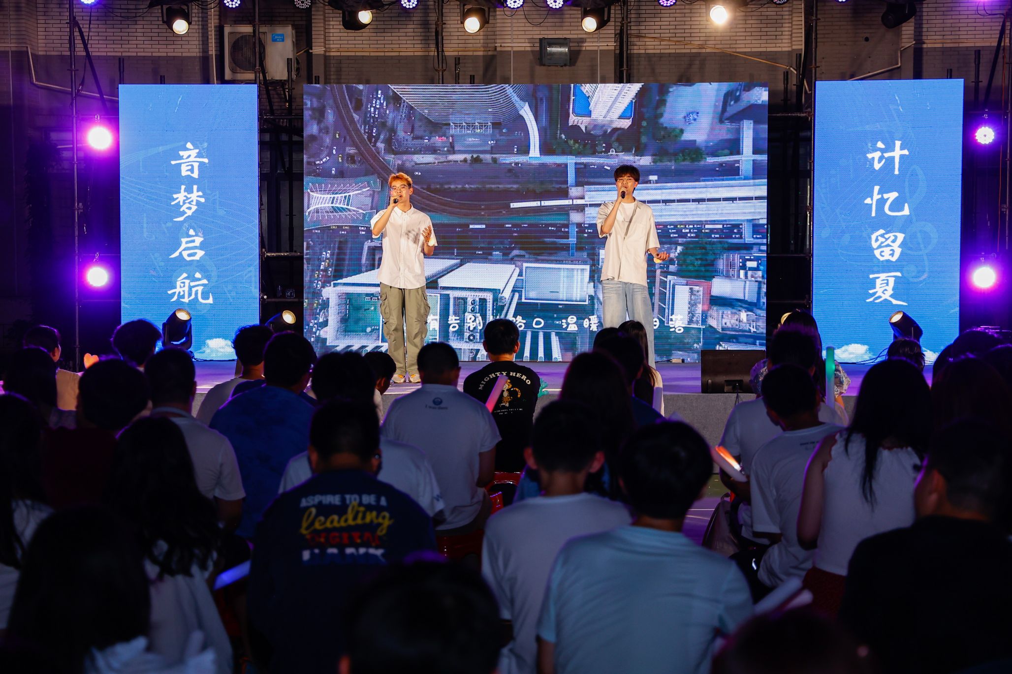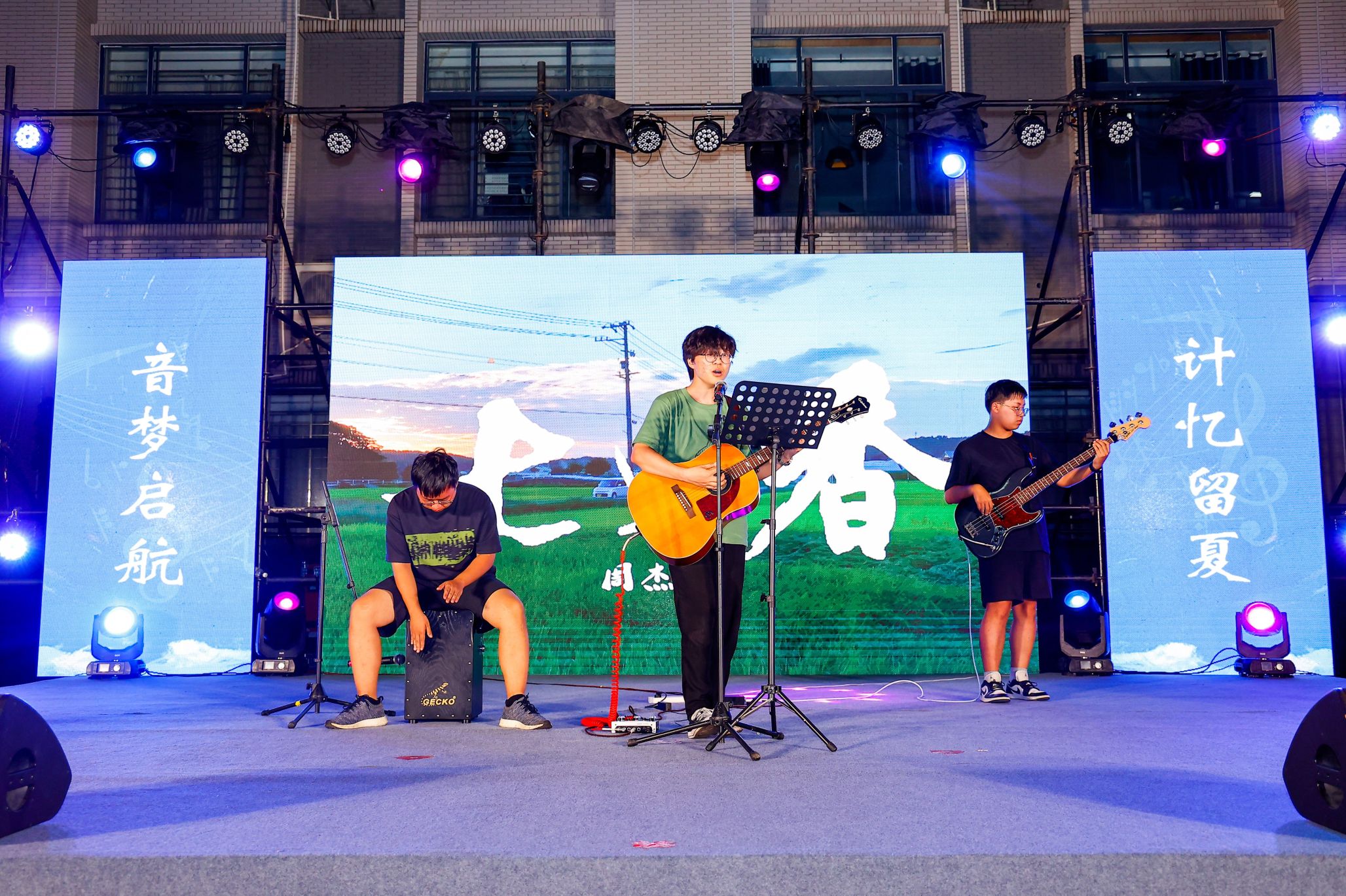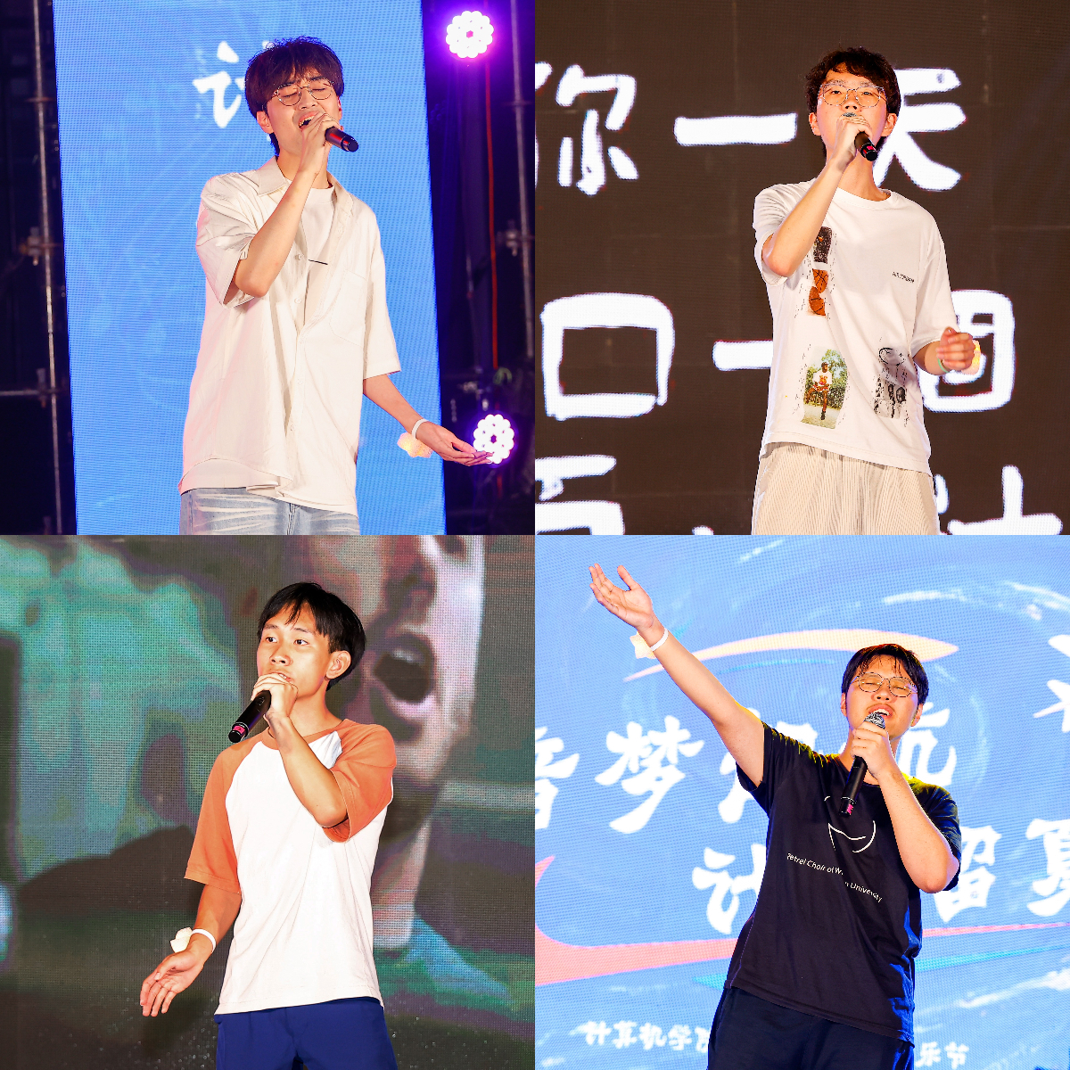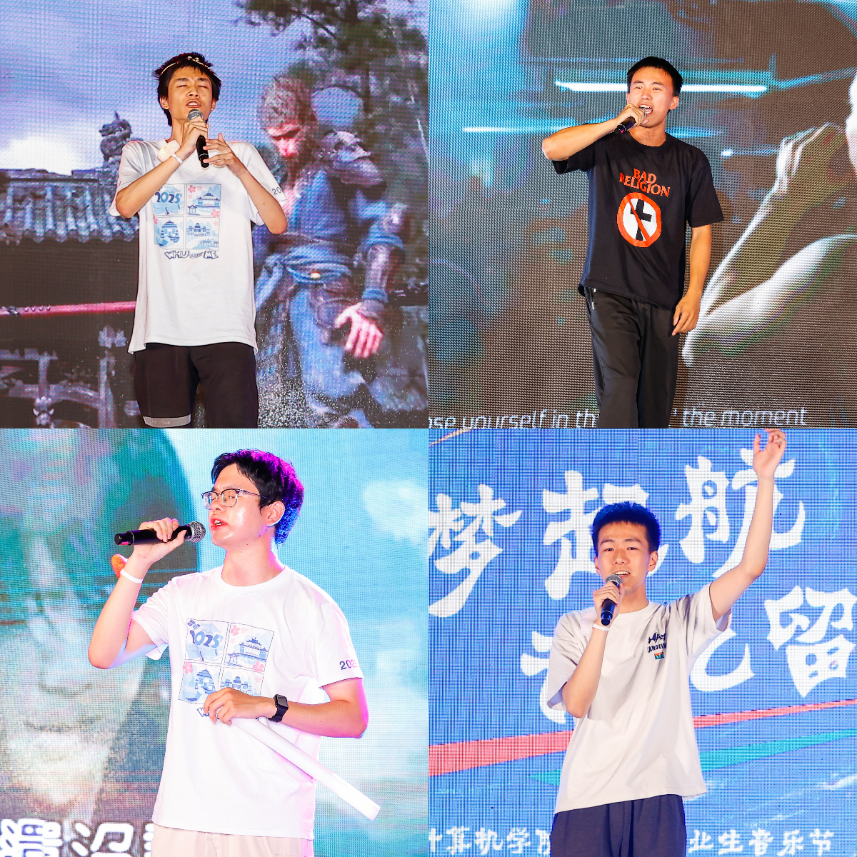 李俊带来《最后一页》,恰似毕业论文的温柔注脚,将凌波门的朝霞定格青春胶片的最末帧;刘晨耕、杨昊宁的《老男孩》《找自己》组曲,用熟悉的旋律带我们回到那个敢用理想丈量世界的青春起点;伏麓丞洒脱演绎《李白》,用少年意气唱响“天生我材必有用”的勇气力量;OI乐队弹唱《七里香》,仿佛听到总图闭馆铃声混合着夏夜蝉鸣,在吉他弦上长出青春盛夏的年轮;杨力闻高歌《Counting Stars》,指引着所有在0与1的宇宙中寻找坐标的追光者。