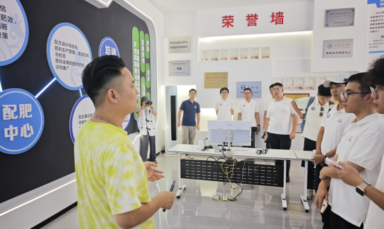 离开白果树村委会后,实践团前往石榴籽数生慧农科技有限公司。在企业负责人董维的带领下,同学们参观了智慧测土生态配肥中心,深入了解基于土壤检测结果定制肥料的精准施肥技术。在现场观摩玉露管家大数据平台时,土壤墒情、虫害预警、气象变化等农业数据的实时监测画面与应用场景直观呈现,让同学们深刻体会到科技在赋能乡村振兴中的关键作用。