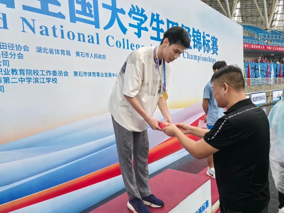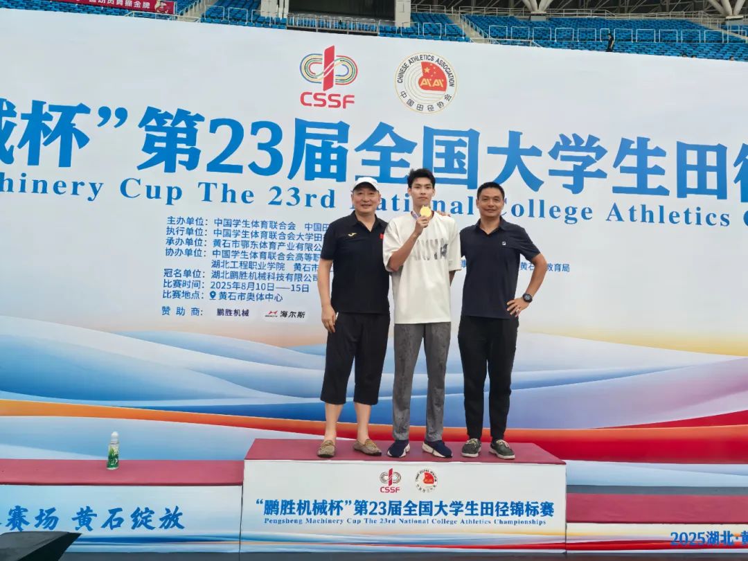 学习。入校时仅为二级运动员的他,开启了不断突破自我的征程:先在2024年第22届全国大学生田径锦标赛,达到国家健将水平,荣获全国亚军;其后又在2025年全国大学生田径项群赛(短跨跳)勇夺冠军;本届赛事(第23届)再夺冠军,并一举达到国际健将水平,实现了突破式成长。