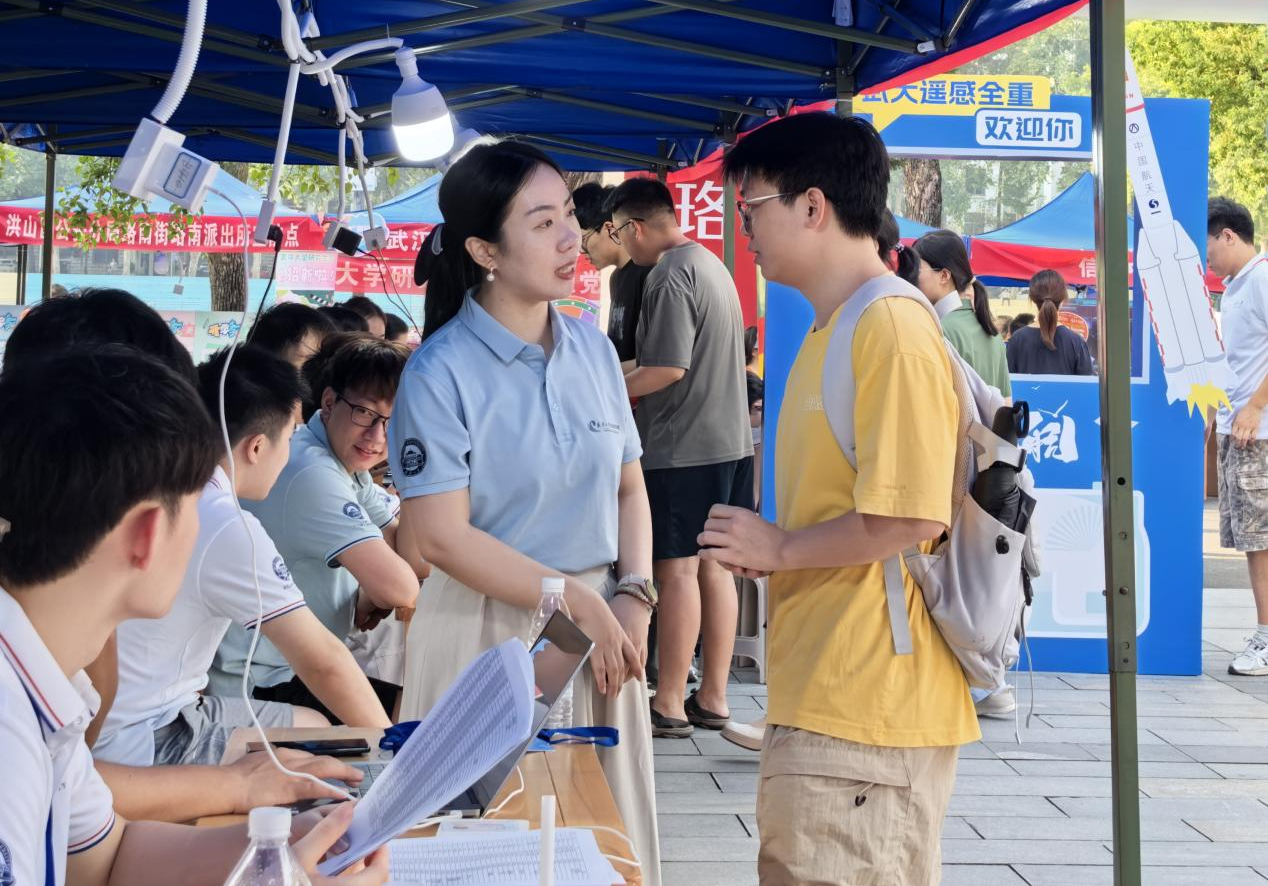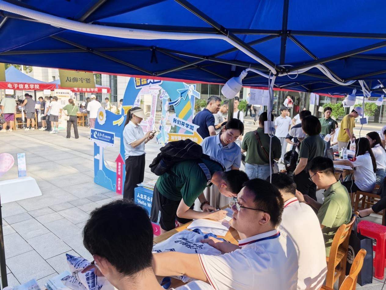 为保障迎新工作顺利开展,研究生辅导员和志愿者们一大早就在信息学部图书馆前集结完毕。搭帐篷、贴指引、摆礼包、调系统,一切井然有序,只为把“第一份温暖”准时送到新生手中。在志愿者的耐心引导下,新生们顺利办理相关手续,报到流程快速高效。在场师生第一时间为同学们解答报到遇到的各类问题,耐心细致的回应让新生和家长切实感受到学院的贴心关怀与融融温度。
