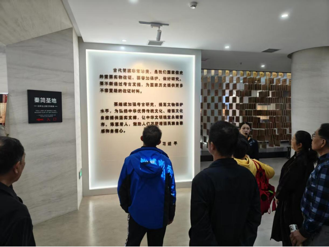 在长达2个小时的博物馆参观学习中,大家通过从一枚枚小小的简牍里,以及考古专家们探寻华夏文明绵延不断的发掘历史依据中,深切感受到了中华民族的灿烂文明和新时代的文化自信。大家还学习了习近平总书记到云梦县博物馆参观出土秦汉简牍展所作的重要指示:古代简牍非常珍贵,是我们国家信史的重要实物佐证,要善加保护,做好研究。要不断通过考古发掘,为国家历史提供更多不容置疑的佐证材料。要继续加强考古研究,提高文物保护水平,为弘扬中华优秀传统文化、增强文化自信提供坚实支撑,让中华文明瑰宝永续留存、泽惠后人,激励人们不断增强民族自豪感和自信心。