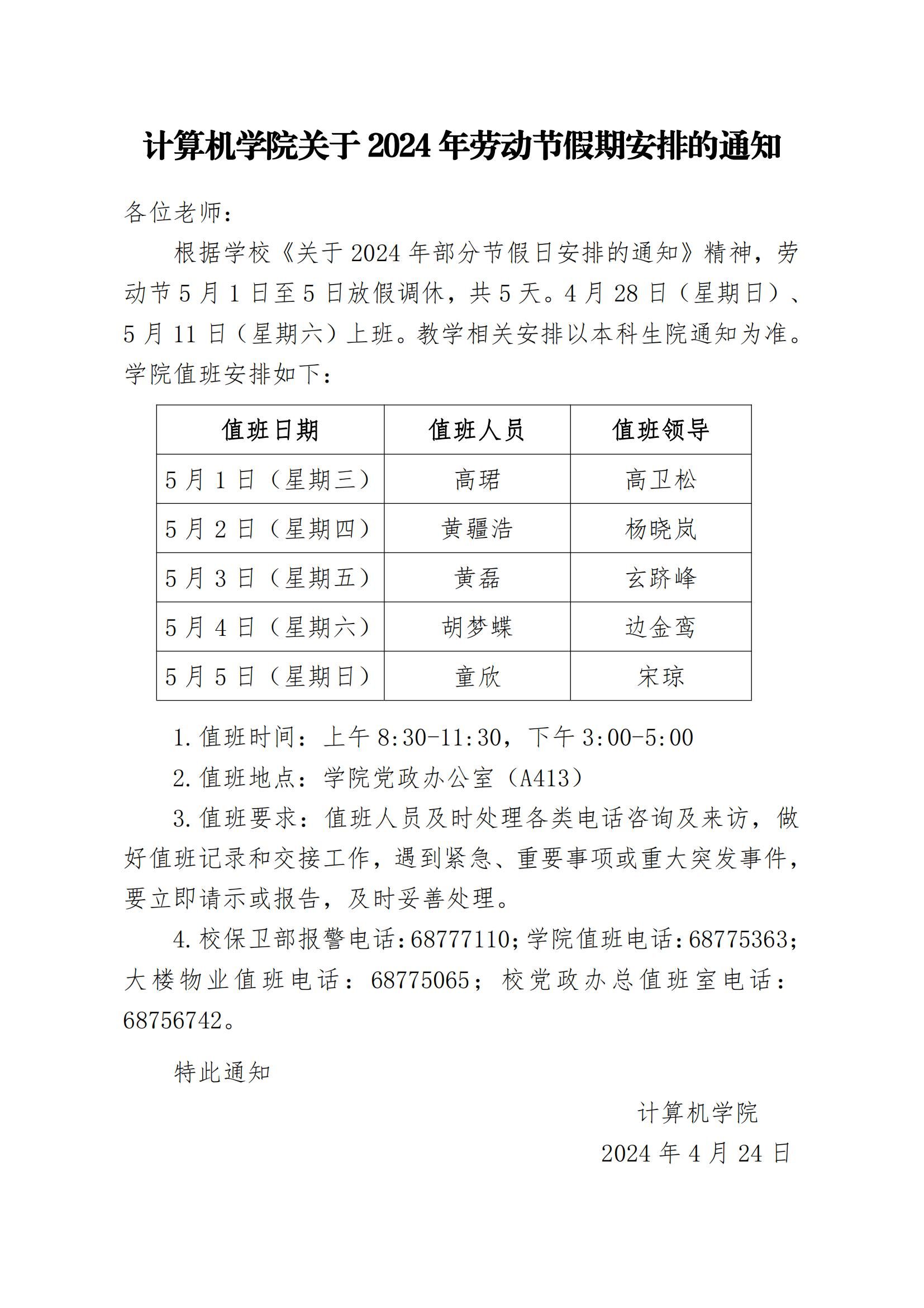 第一会所 关于 2024 年劳动节假期安排的通知-第一会所