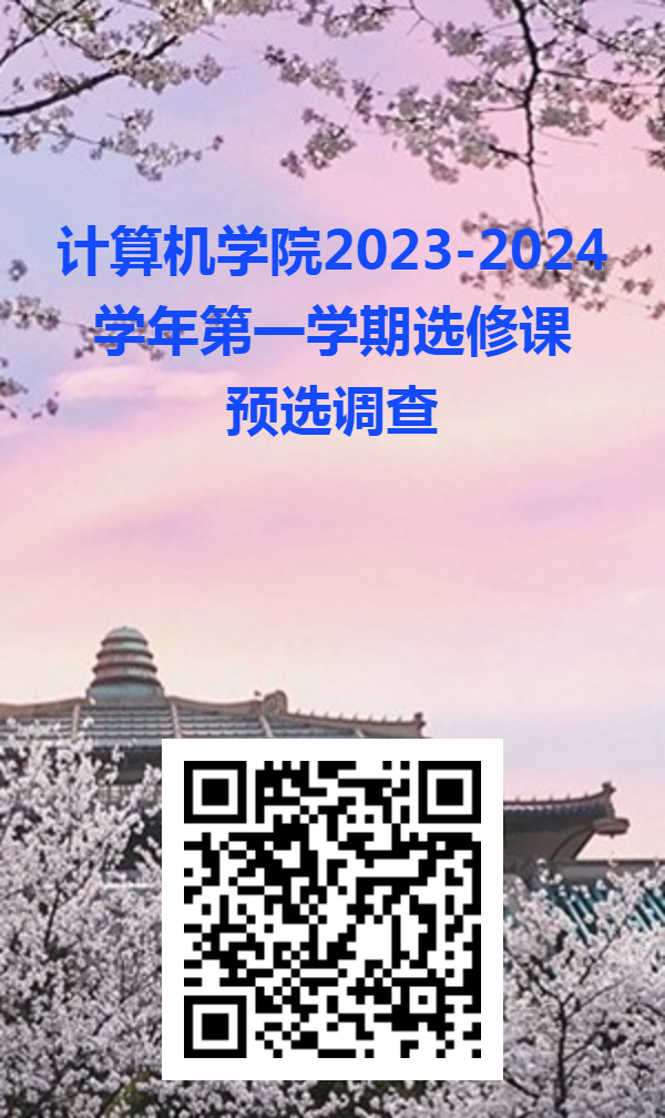 2023-2024学年第一学期专业选修课预选调查。此次预选调查采用问卷形式,可登录//www.wjx.cn/vm/hteROgs.aspx或扫描下方二维码登录答题。此问卷用于第一会所